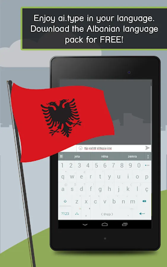 Download this FREE Albanian dictionary pack to use it with your ai.type.com Keyboard. You’ll be able to type much faster with our world leading next word prediction, completion and correction self learning technology. The ai.type Keyboard makes a perfect tool that learns your typing patterns then predicts and corrects your typing- as you type. Try it out now for FREE!