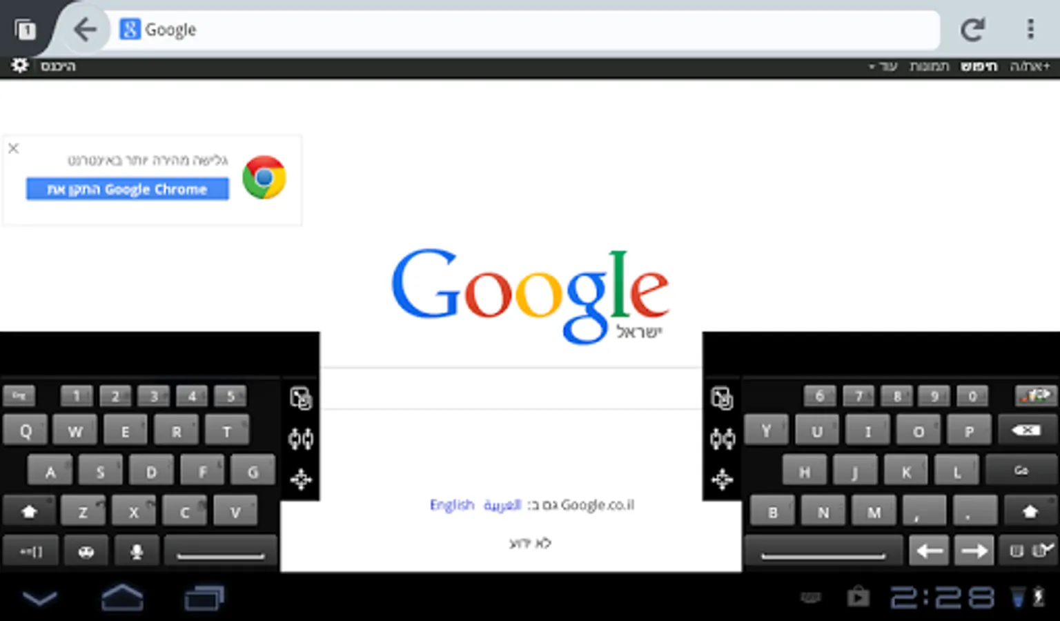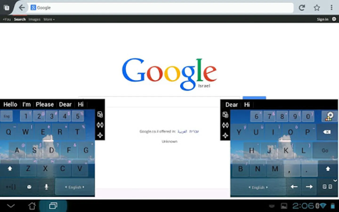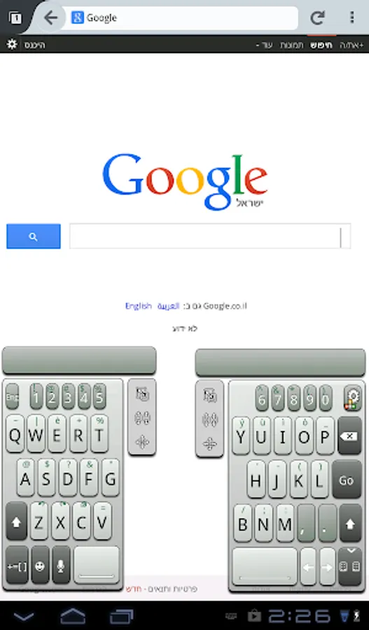 The split-keyboard "floats" above the screen and can be located anywhere on the Tablet screen. It’s small, elegant and occupies almost no screen space, and it gets even better: users can move it and re-size it with intuitive drag and drop!