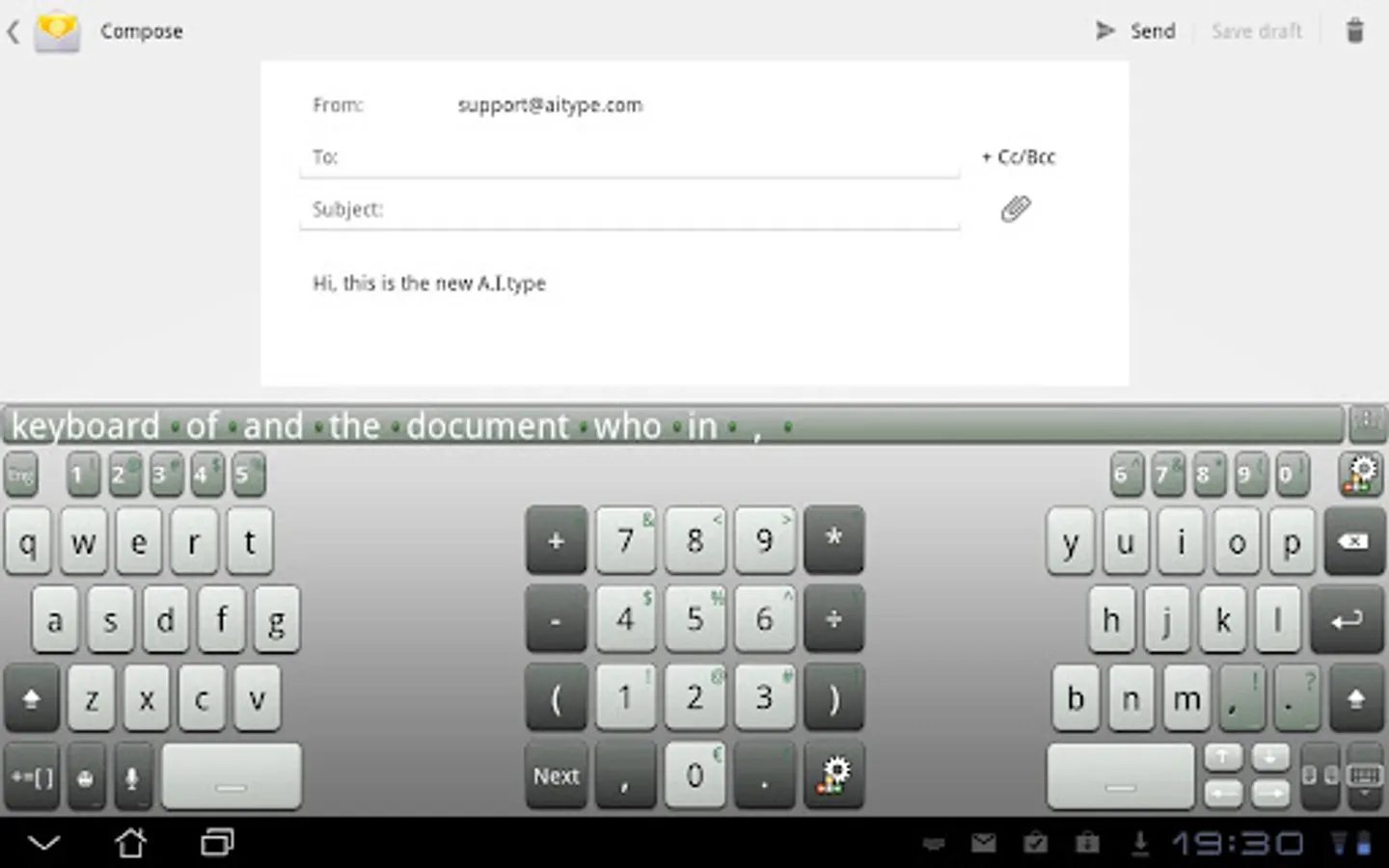 AI-Keyboard is an easy to use, super smart keyboard to replace the standard one on your tablet.