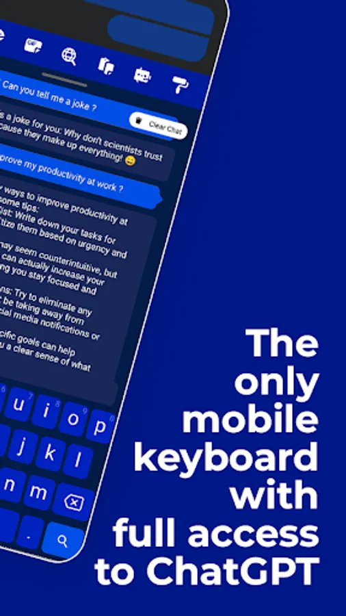 Blue Keyboard is an Open-Ai powered, customizable keyboard for iOS with personalized themes, an in-app browser, a wide selection of GIFs, and exclusive stickers.