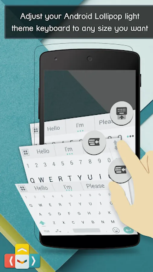 Keys are not separated in a grid as the curves and lines of the letters provide the only needed visual cue. This flat design features bold buttons and a color palette similar to Google L's. Download now and get some “Material Design” on your phone before Android Lollipop Light is released to the public.