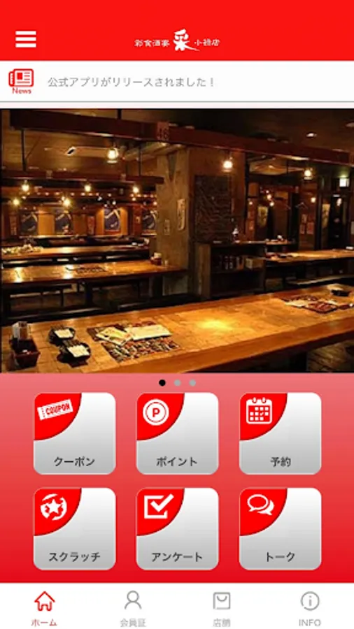 SNS links, such as guidance / facebook directions of the benefits of the application members only at the point card function / application membership card and coupons that can be used at the store for the latest information on the website / store from the delivery / You are here in a push notification in Navi