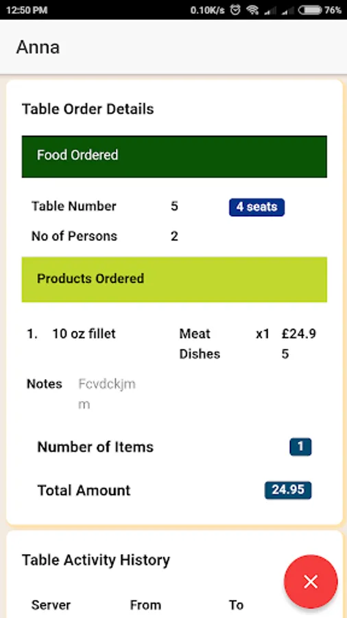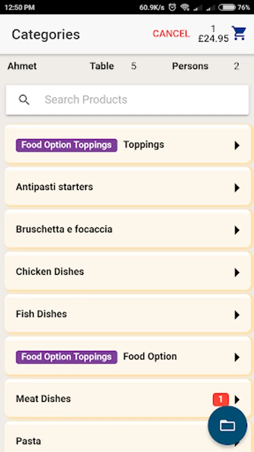 Table ordering mobile application for restaurants. Require Captur EPOS