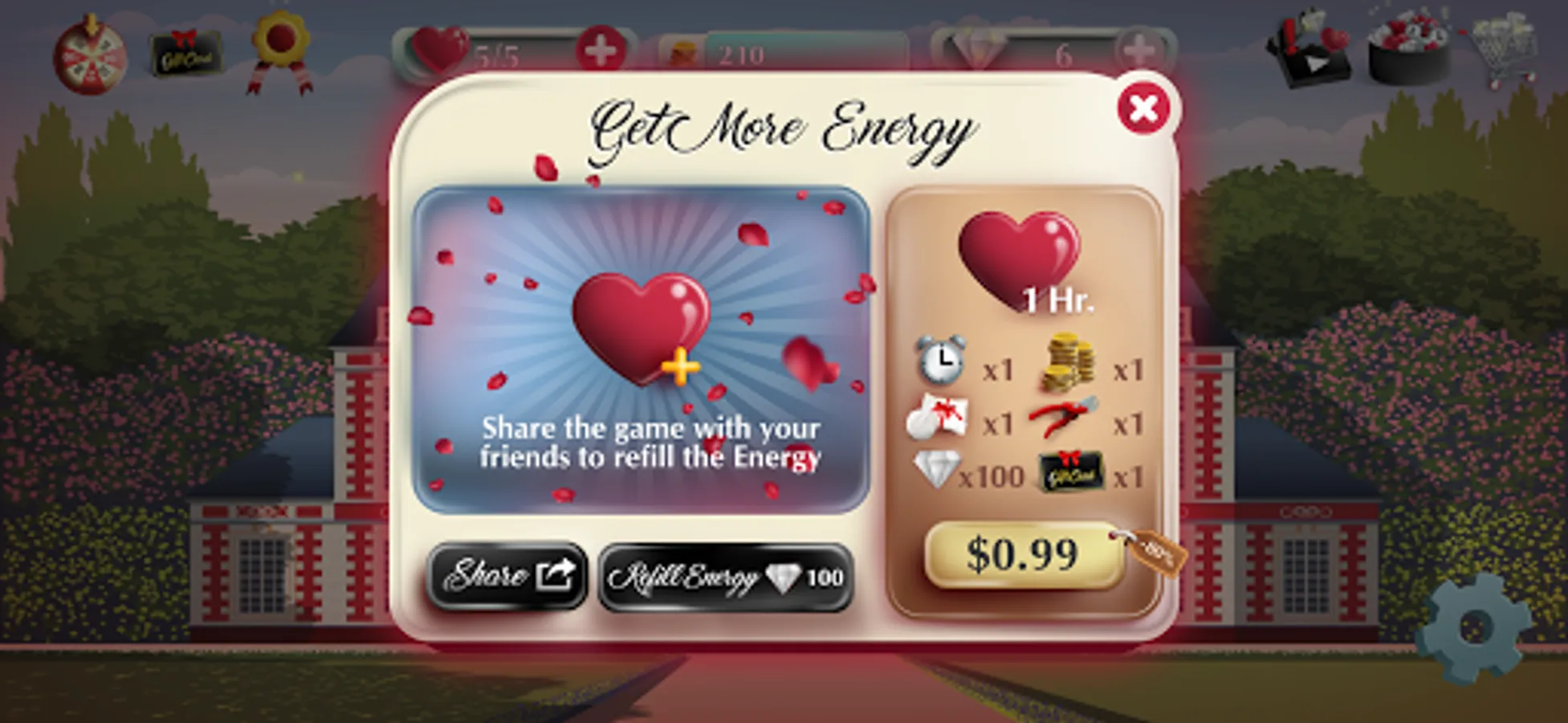 • To level up faster, the flower buds have to be upgraded along with other items available such as flower boxes, flower bouquets, flower boards, flower scissor, and chocolates...
