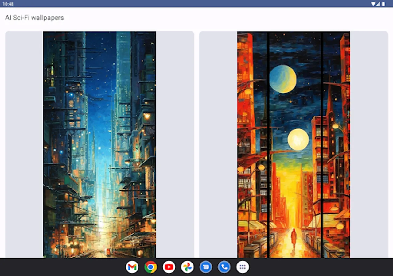 Our app takes you on a visual journey across diverse themes: Sci-Fi, Churches, Flowers, and more. Experience the futuristic intrigue of Sci-Fi, the sacred beauty of Churches, the natural allure of Flowers, or the rugged mystique of Post-Apocalyptic settings. Each wallpaper is a masterpiece that blends creative AI technology with captivating artistry.