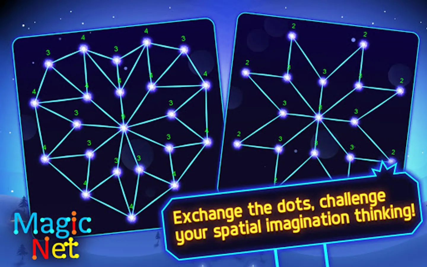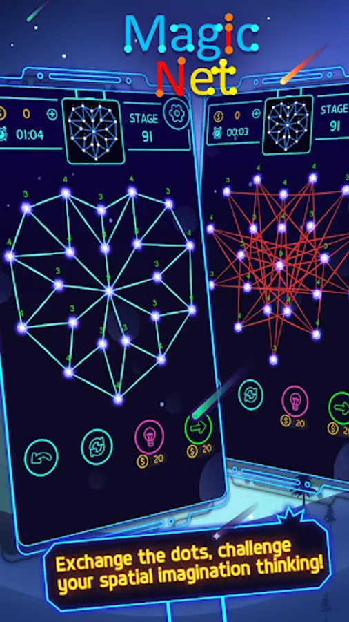 Unlock the magic net puzzle by swapping nodes.