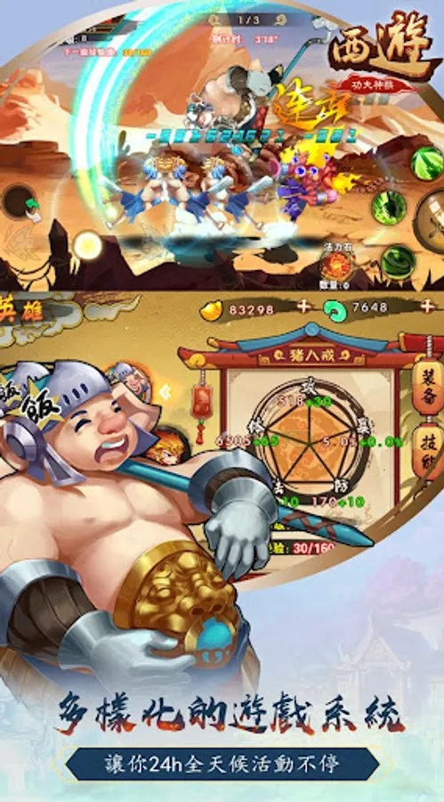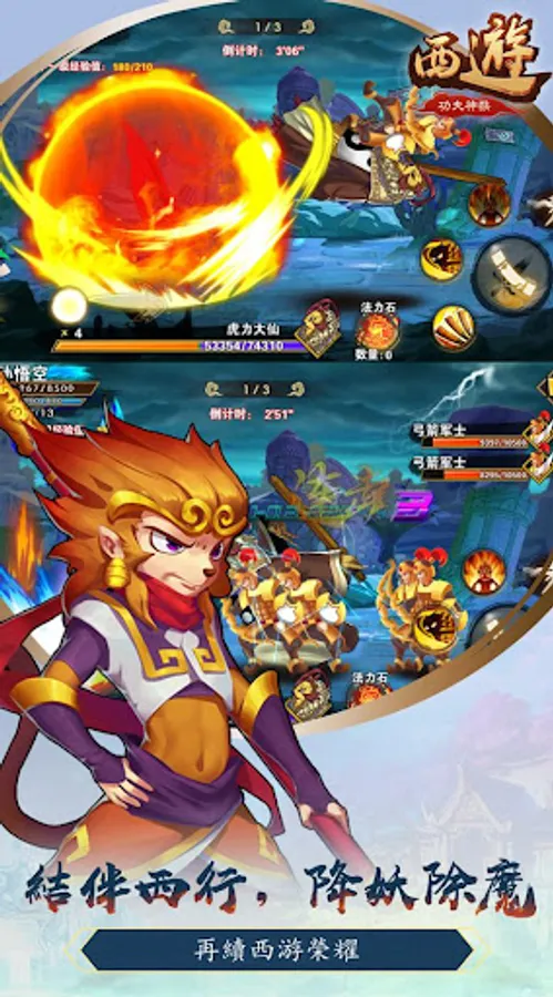"Westward Journey Kungfu Monkey-God and Demon Battle" is the latest large-scale horizontal scroll action game. The game uses a variety of the most advanced technologies nowadays, which greatly enriches the expressive power of the game screen. At the same time, the game has a number of available Westward Journey classic characters, such as Wukong, Xiaolongnu, Pig Bajie, etc., the fighting experience of cloud and flowing water, the refreshing blow feeling from fist to the flesh, gorgeous special effects and shocking sound effects, let you enjoy the thrill of fighting! In conjunction with the epic story of the gods and monsters on the Westward Journey, the player will be brought to the time and space of the arrival of ten thousand demons and the battle of the immortals, and experience the twists and turns and greatness of the Westward Journey!