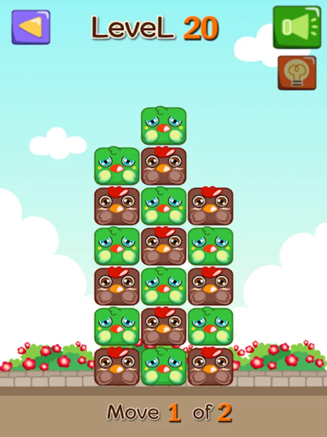 Move three or more of the same bird into horizontal or vertical line, to make them bubble. Clear all birds from the screen to pass the level. Keep play to unlock the next challenge levels.