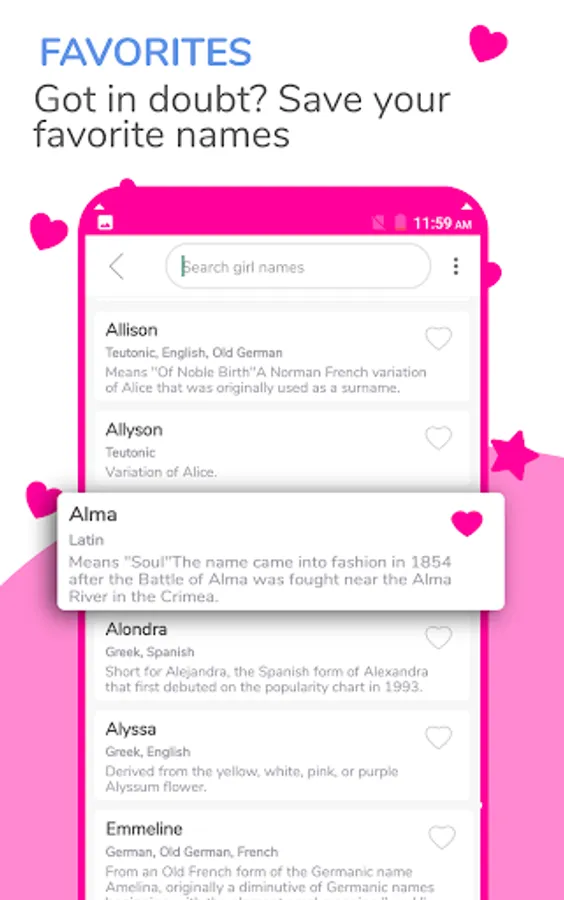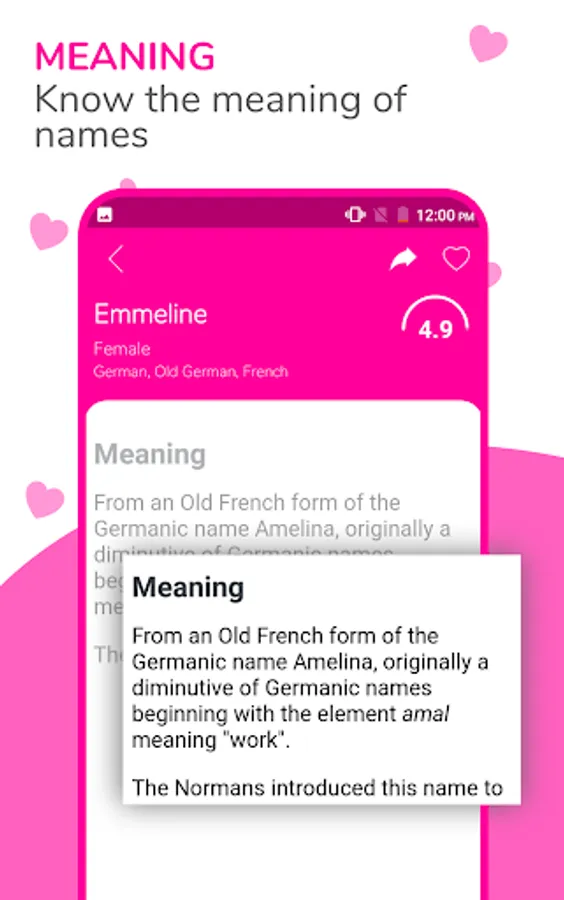 This app, you have easy access to more than 3,500 names. For every name you have the meaning.