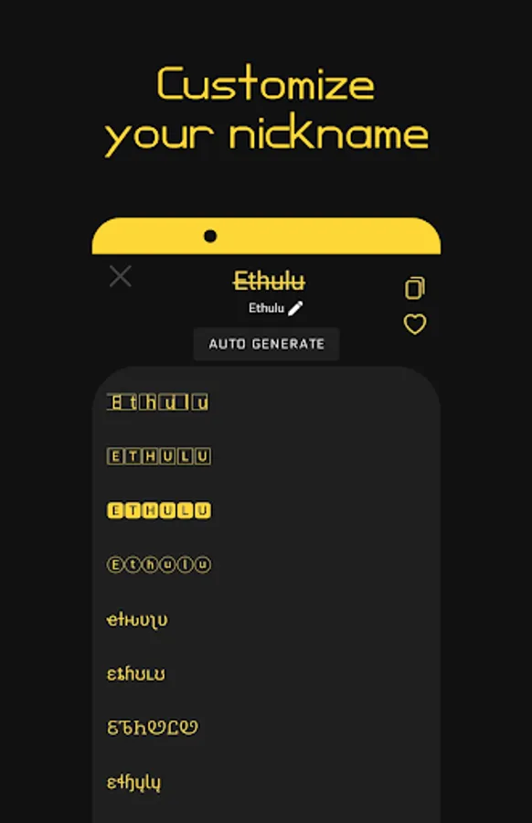 ✔️ Suggestions. List of predefined nicknames to help you choose