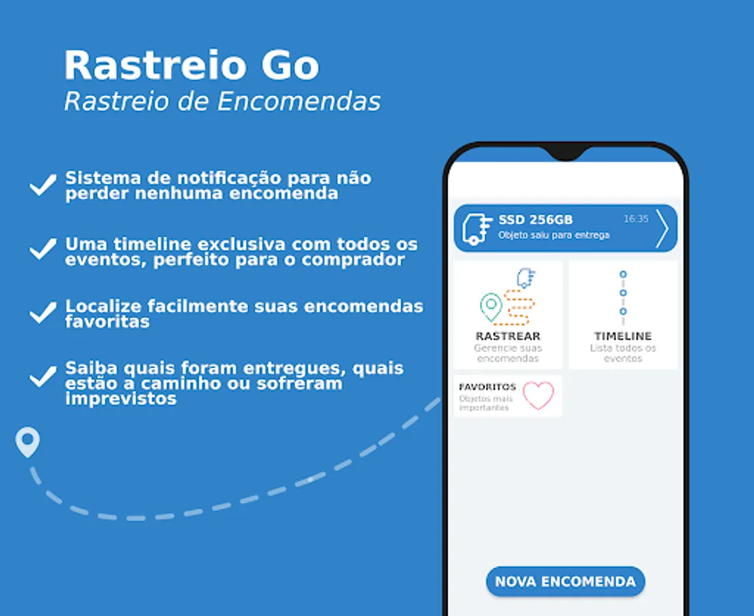 Tracking Go tracks all your orders registered at the Post Office, with a notification system. In a practical way, you resolve pending issues in case of taxation or other pending issues and resolve them in a moment.