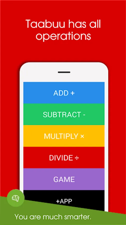 Taabuu also offers a game for learning practical and fun way. Test your skills in the operation you love or further increase the challenge by answering the questions in the four operations game with random questions of what has been learned and you win medal for your result in game.