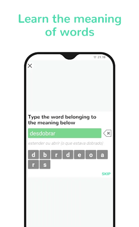 Improve your Portuguese, learn new words and explore the language with this vocabulary Builder. Unlock the wisdom of the world!