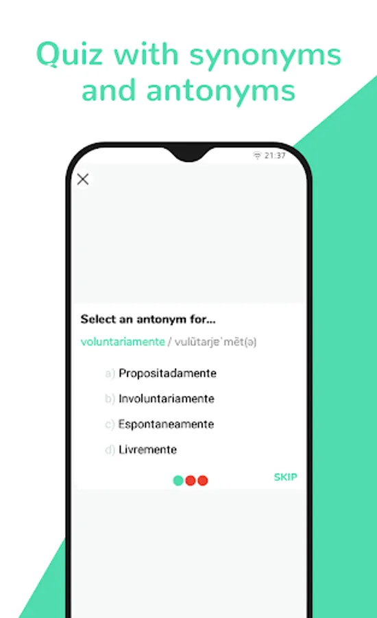 Word Coach - Portuguese is a free quiz vocabulary game that helps you improve your Portuguese vocabulary with a quiz game. Find synonyms, antonyms and meanings. There are about 3200 questions with content antonyms, synonyms and meanings in the grammar classes verbs, adjectives and adverbs.