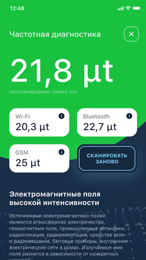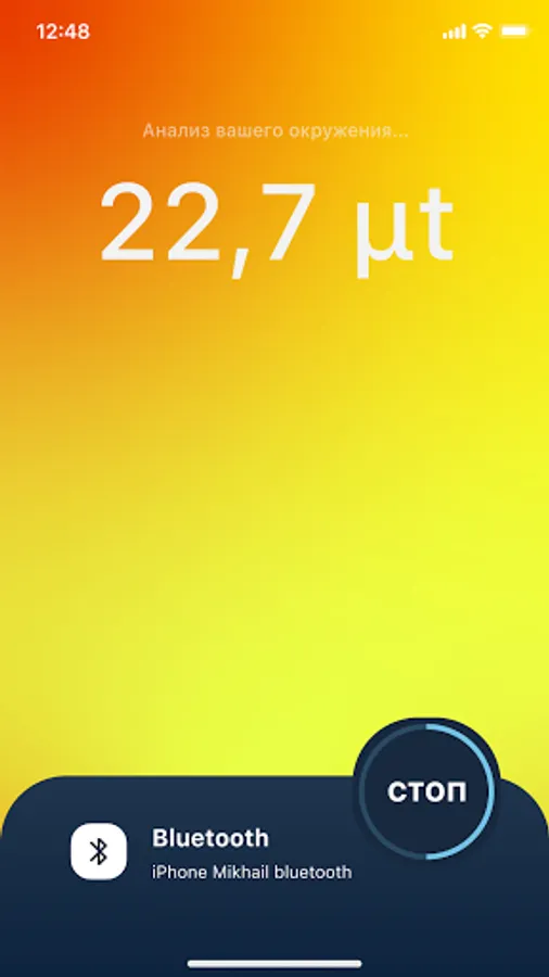 As a smartphone picks up bluetooth signals from other devices to transmit information, it can also analyze the amount of EMP received through this communication channel. The application will help you find out what kind of electromagnetic load falls on the body every second.