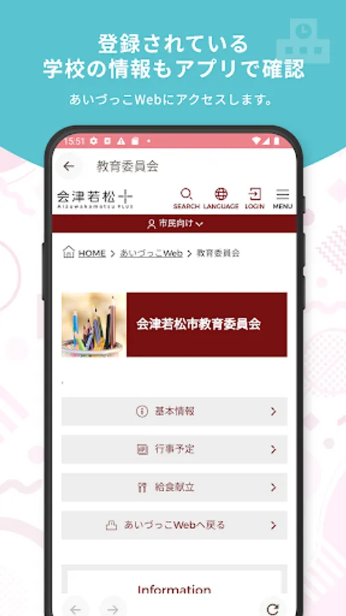 "Aizukko+" is an application developed for smartphones based on the "Aizuwakamatsu City Educational Portal Site Aizukko Web," which unifies and disseminates information about Aizuwakamatsu municipal kindergartens, elementary schools, junior high schools, and the Board of Education. .