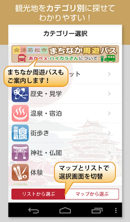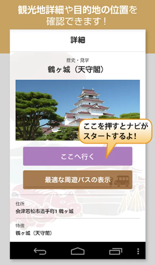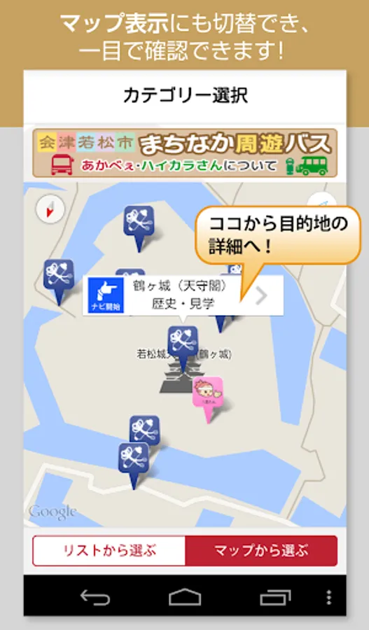 I will select a destination from the map or list ②. You can detail information is displayed, it is set as the destination.