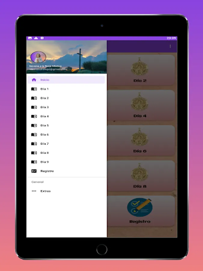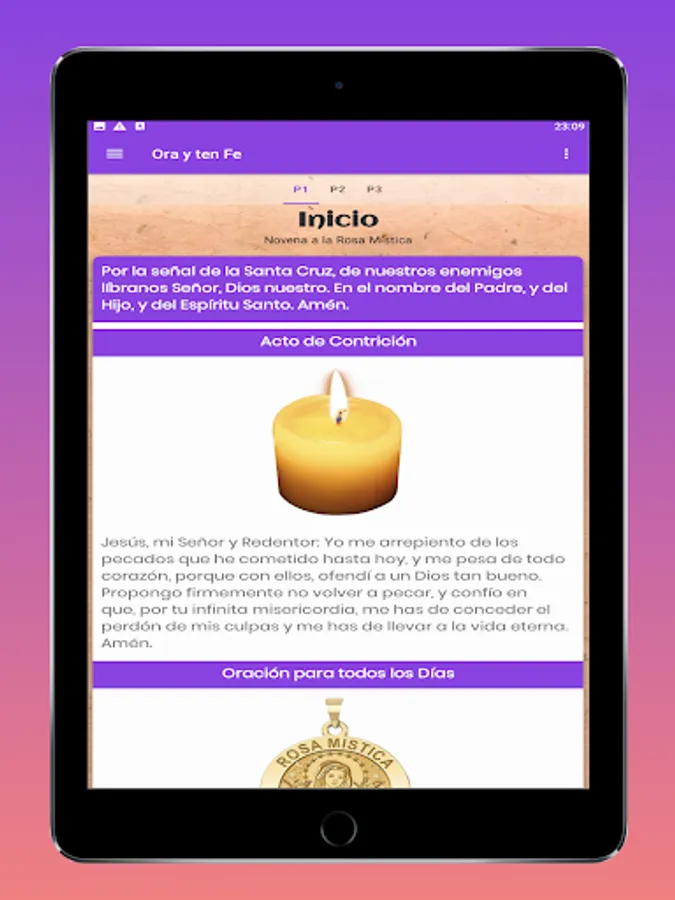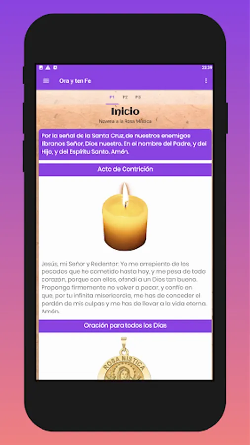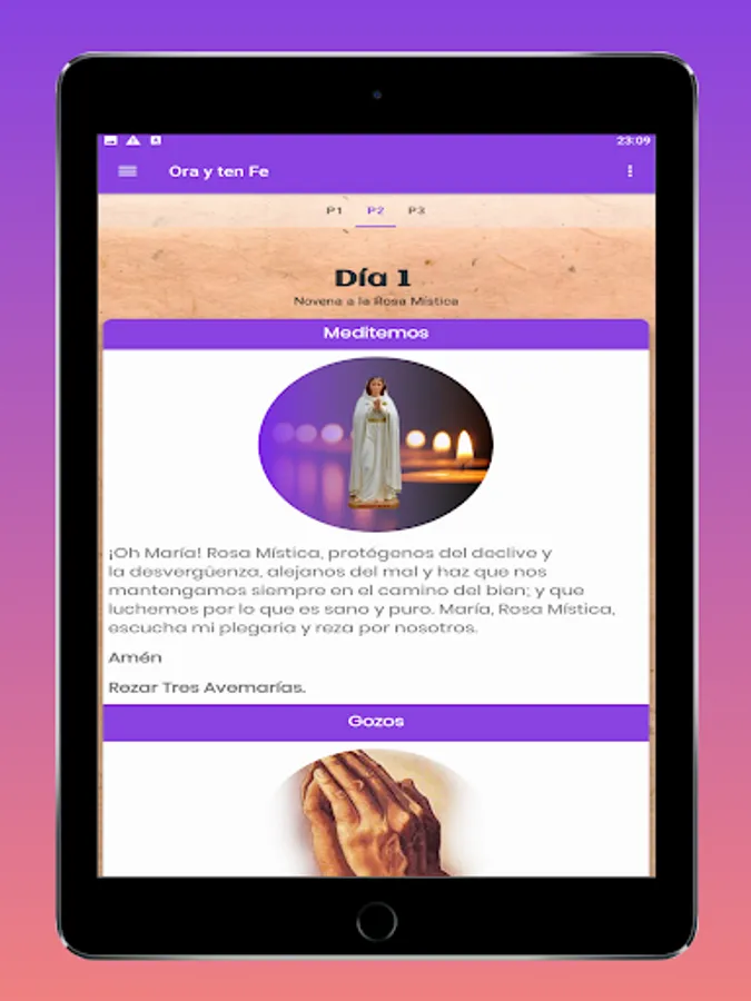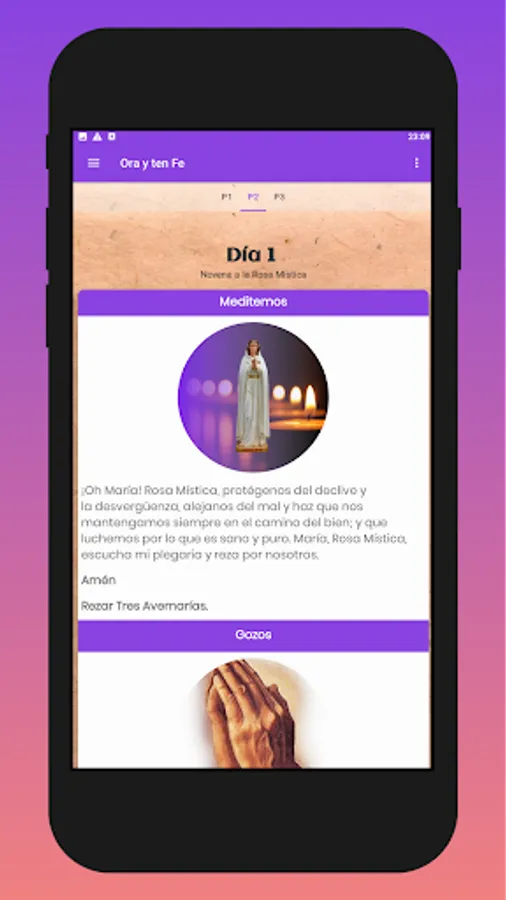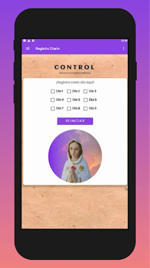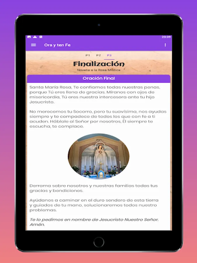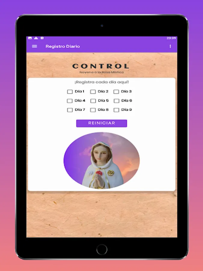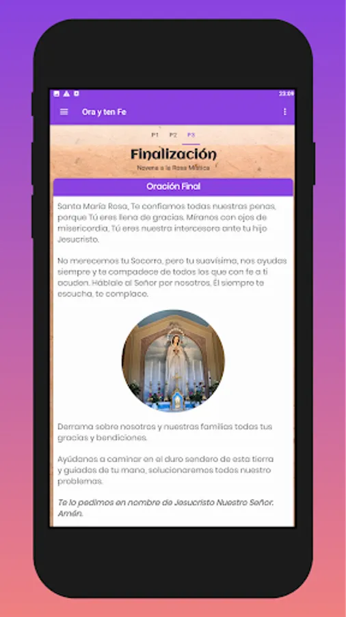 The application of the Novena to Maria Rosa Mystica has a modern design, it is easy to use and practical.