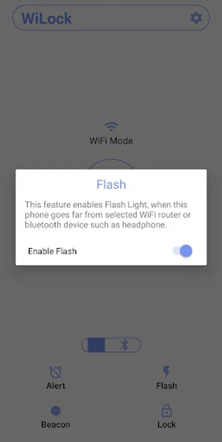 This feature enables Flash Light, when phone goes far from selected WiFi router or Bluetooth device such as headphone.