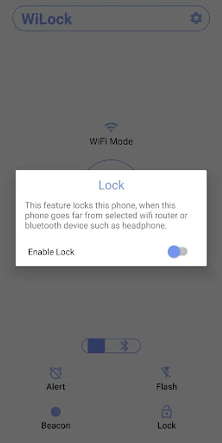 WiLock can alert you, turn on flash, or lock it when you are away from selected WiFi network or Bluetooth device. These features can be used as an anti theft indicator or connection warning indicator.