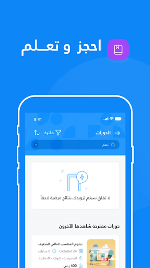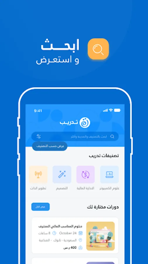 “Training platform” is an electronic platform for booking training courses that meet the needs of trainees in Saudi Arabia and abroad. A training platform was created to provide a new and innovative concept for training courses, through its website and smart application, which was designed to give you the opportunity to book your training courses in hundreds of specialties, and more than 300 institutes and training centers in Saudi Arabia at prices that suit everyone.