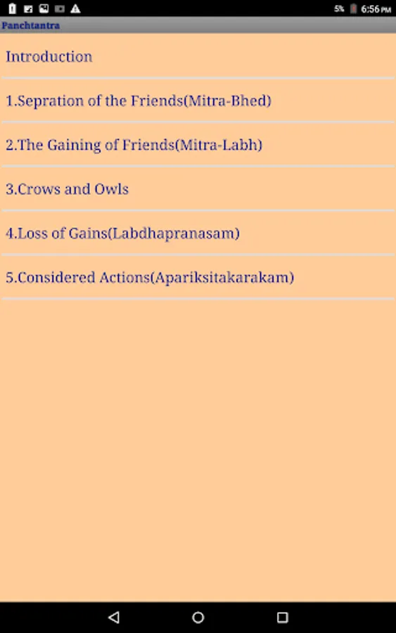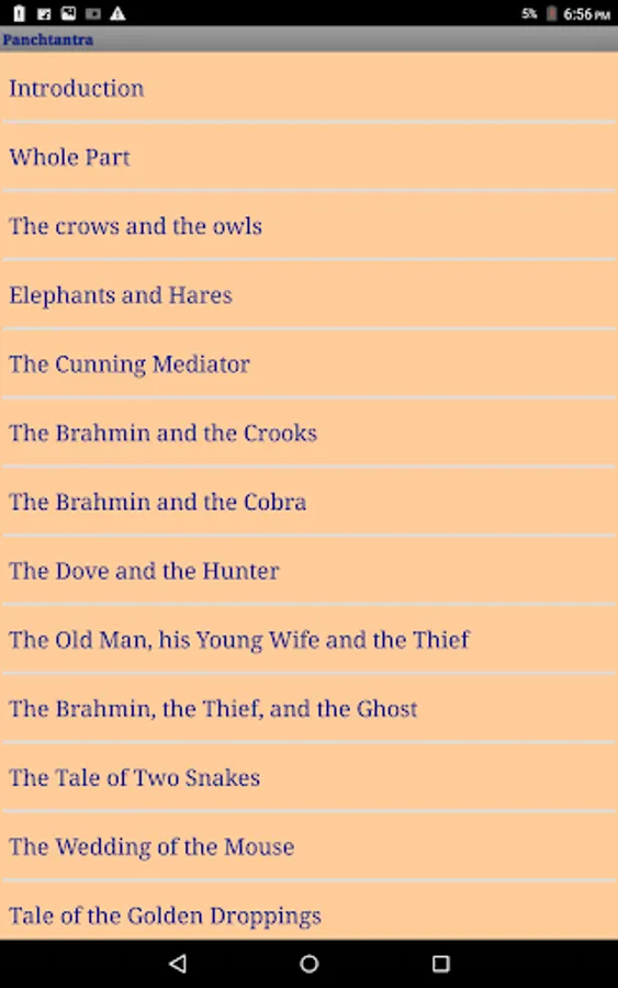 This is the only application which contains all stories of panchtantra divided in Five parts same as in real book.