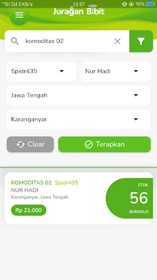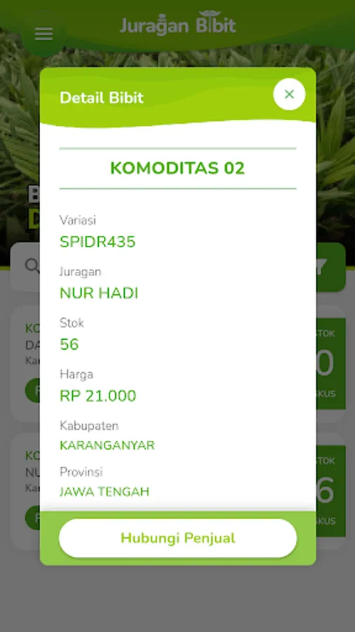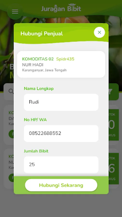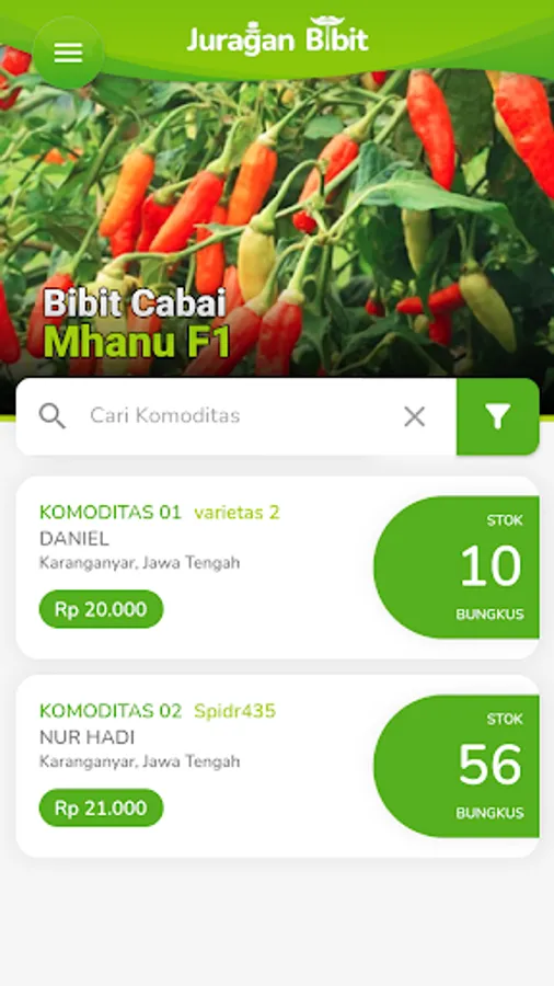 This application can search for seeds of a commodity based on location to district level location. This application also brings together seed sellers (seedlings) with buyers at the desired location. Meanwhile, the transaction becomes an offline agreement for the seedling skipper and the buyer.