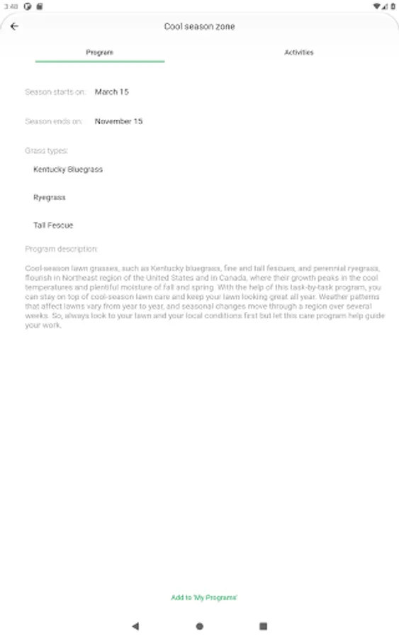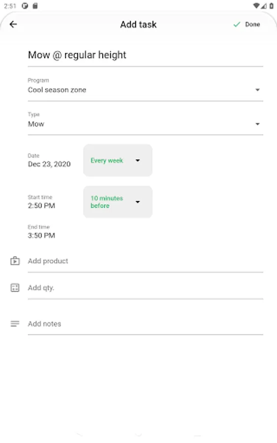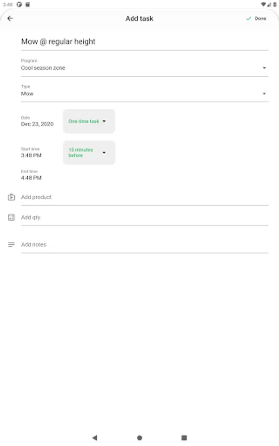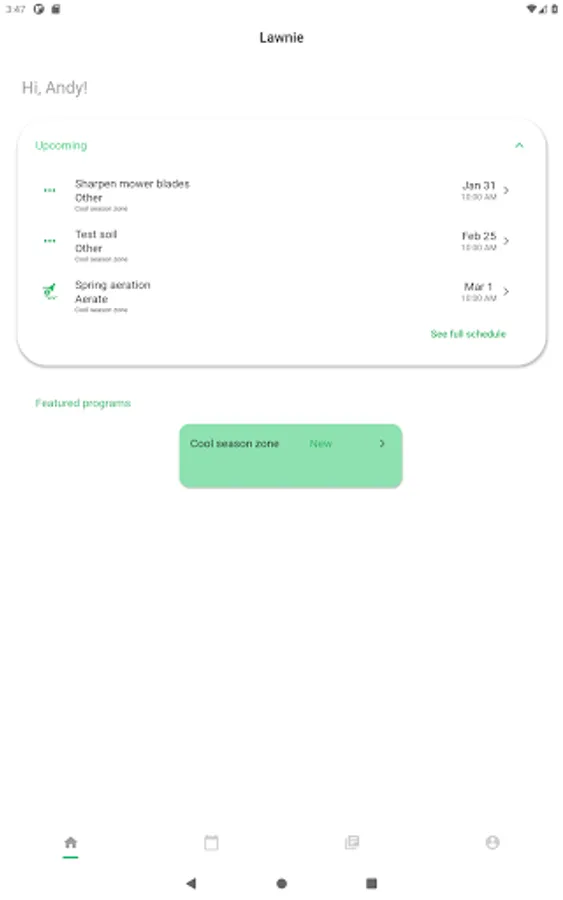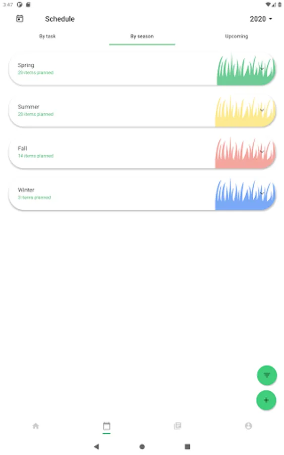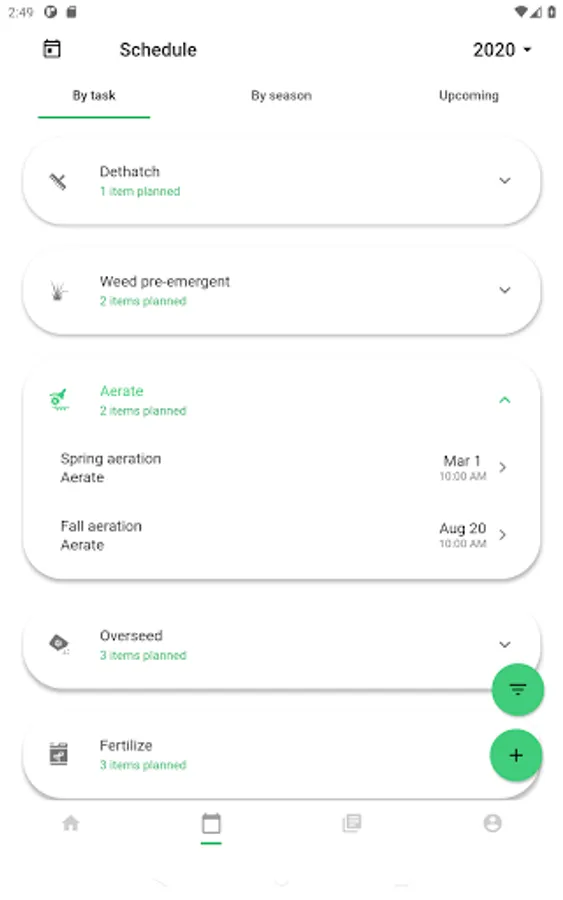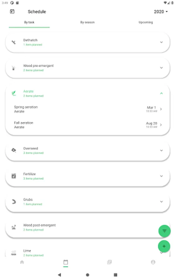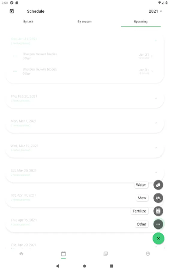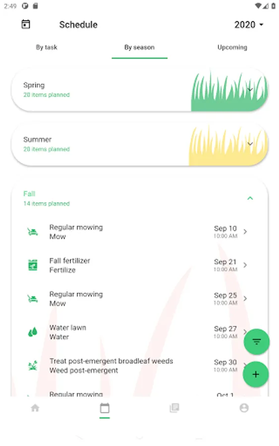 Lawn care reminder app. Lawn mowing, watering, fertilizing, any kind of seasonal tasks and more. Use per-built or create your own lawn care programs here. This lawn care tracker will have one-time or recurring scheduled events to make sure you have the most resilient lawn in the neighbourhood and don't forget to care for your lawn again.