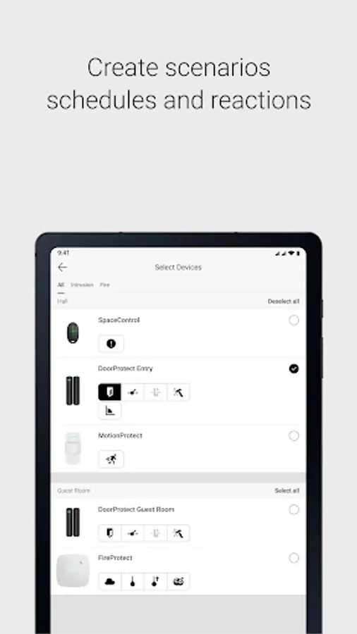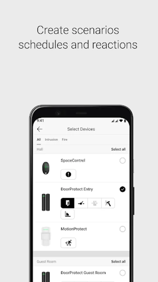 Automation scenarios make your Novus security system go beyond detecting threats and begin to resist them actively. Configure Night mode security schedule or turn off the lights automatically when you arm the system. Program your outdoor lights to spot the trespassers when they set foot on your property, or configure a flood prevention system.