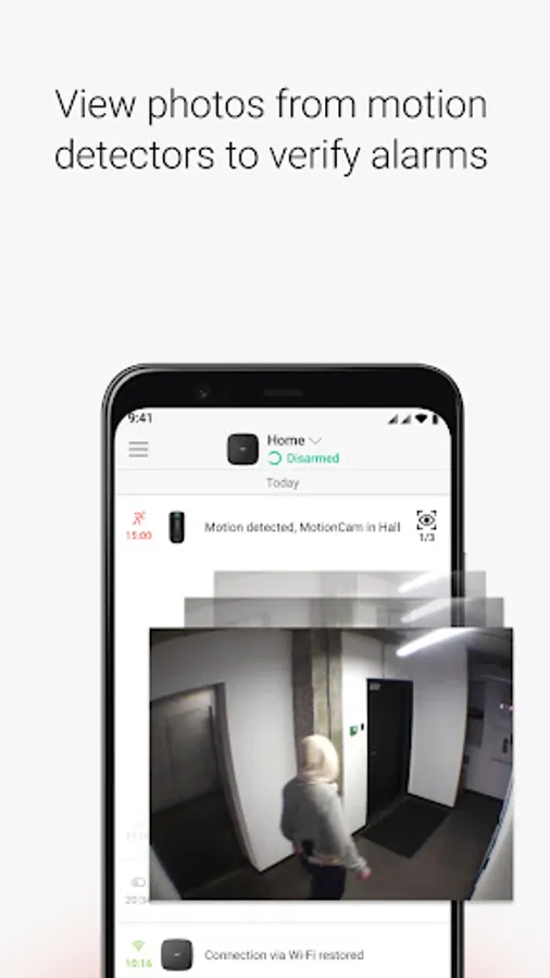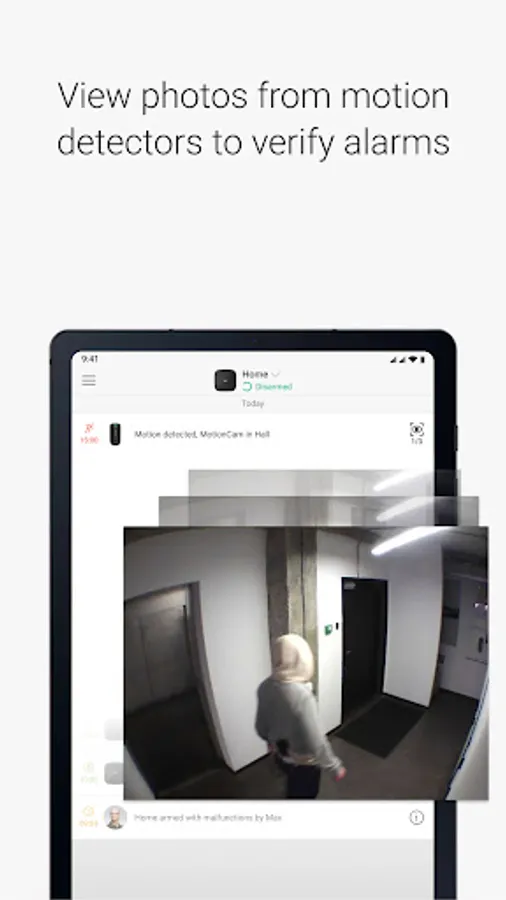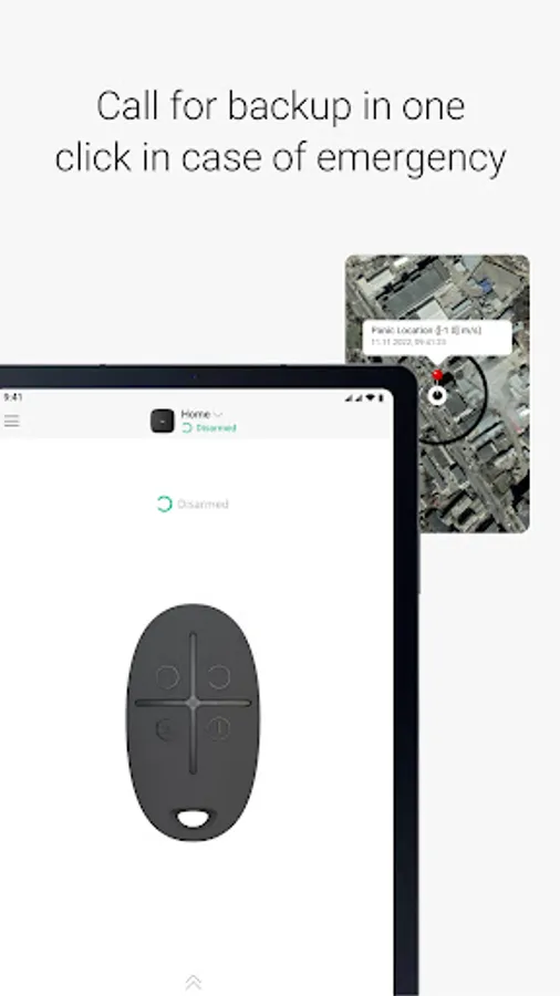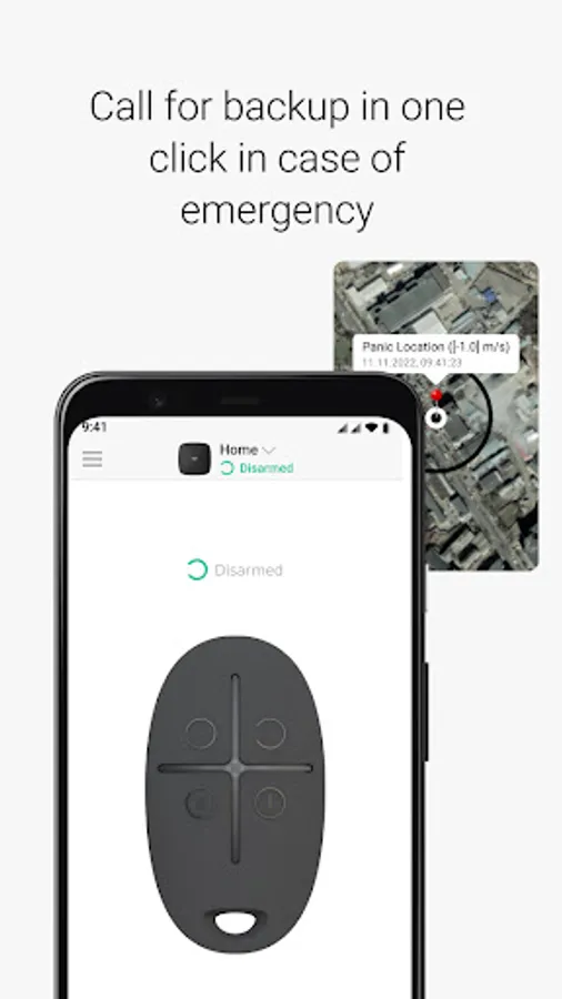 In case of emergency, press the panic button. The security system instantly notifies all users about the danger and requests the security company assistance.