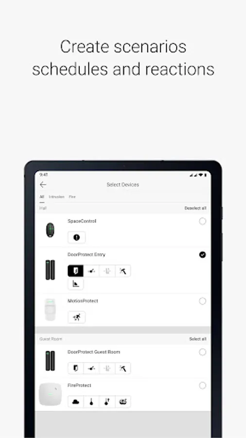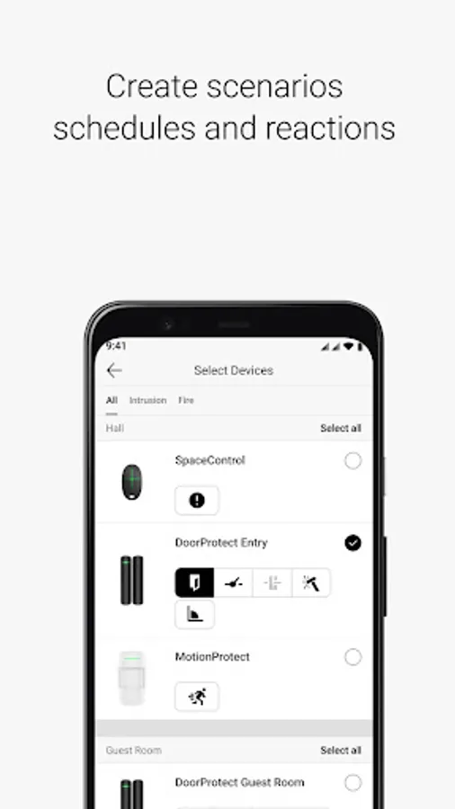 Adjust your security schedule. Turn the lights off automatically when you are arming a facility. Program your outdoor lights to spot the trespassers when they're setting foot on your property. Configure a flood prevention system and control gates, locks, lights, heating, and electric appliances in the app. With Smart & Security, your imagination is the only limitation.