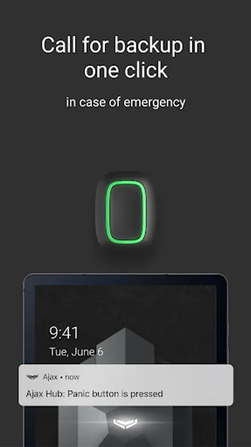 Press the panic button on the app, key fob, or keyboard in an emergency. Ajax will call a security company patrol dispatch or medical help and notify all system users about the danger.