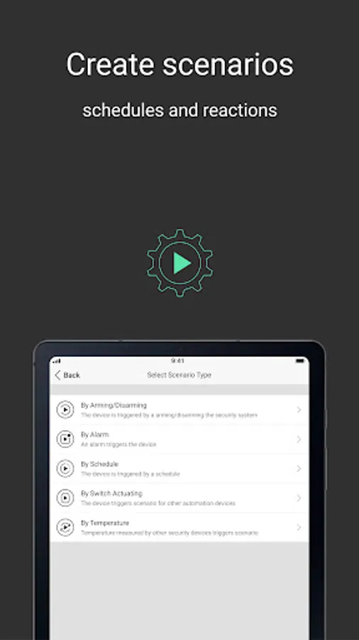 Change security modes up to a schedule, program the outdoor lighting to turn on when strangers are detected on your property, or implement an anti-flood system. Manage gates, electric locks, lighting, heating, and electrical appliances. In the app, automatically by scenario or by pressing a smart button.