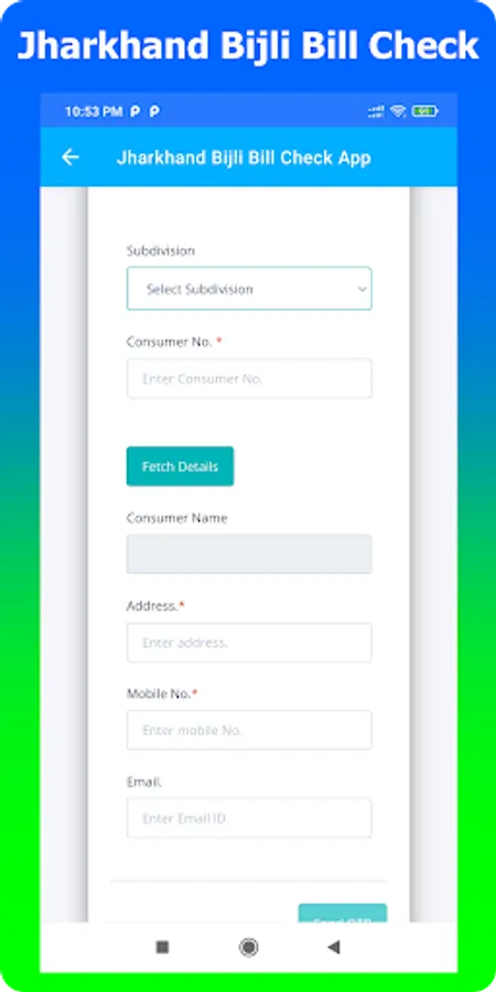 This (Jharkhand Bijli Bill Check App) is a web based official android app of Jharkhand Bijli Vitran Nigam Limited. Users can use this app for making an online request for new electric connection, name change, load change, complain. Besides this consumer can also view their energy bill online and pay their energy bill online with receipt and SMS confirmation