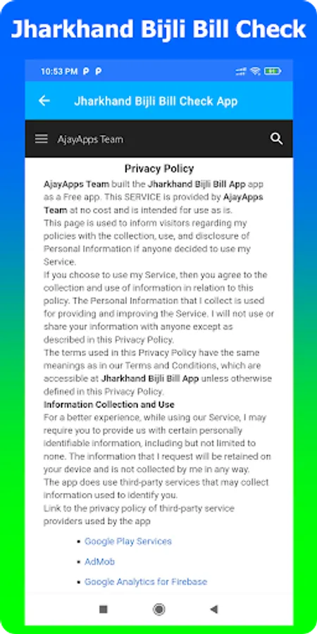 This (Jharkhand Bijli Bill Check App) is not an official app. This App contains third party web links of some official websites of (Jharkhand where you can check your home or office electricity bill online in your mobile. All the web links available in this app are belongs to their respective owners only.