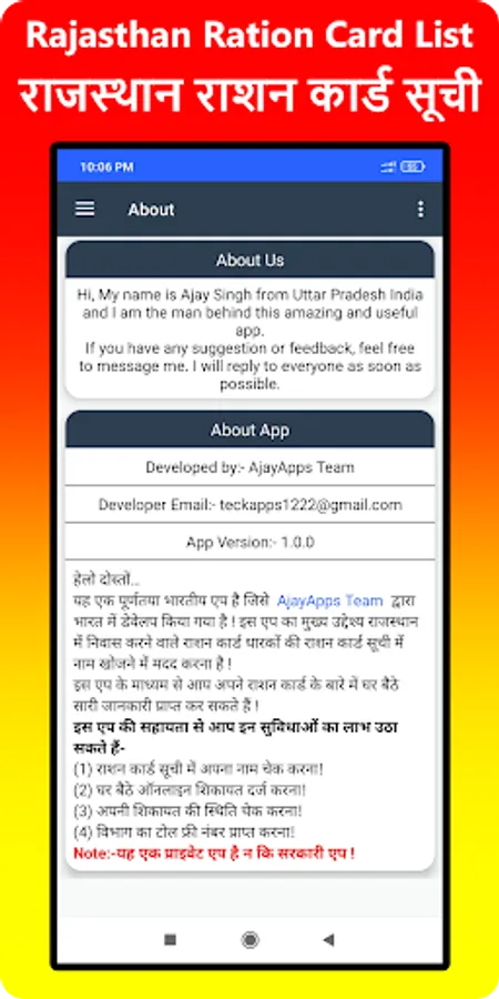 Disclaimer - This app is not being run by any government department, nor is it associated with any government department. This app is made only to provide information to you. All the information displayed in this application is taken from the website of the Food and Civil Supplies Department of Rajasthan, which is subject to change. Therefore, before using any information, please confirm the information by visiting the official website. Only then use any information.