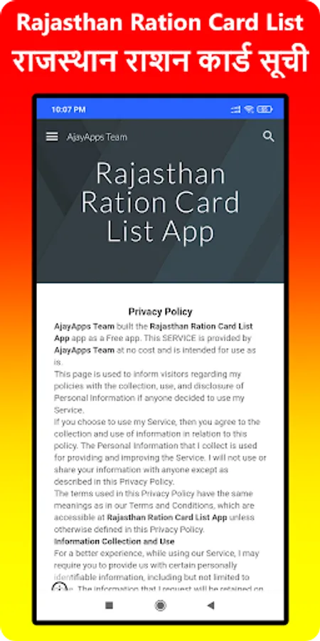 Rajasthan ration card 2023 (राजस्थान राशन कार्ड 2023) online search android app is developed to find Rajasthan online ration cards, online BPL list, online AAY list, online NFSA list, online non-NFSA list, e-ration cards issued by the food department of Rajasthan. This is an in-one android app for APL ration search, BPL ration card search, BPL list, AAY list, latest NFSA list, ration card status, ration dealer status, fps code name. All information displayed in this app is loaded from the food and supply department website, Rajasthan.