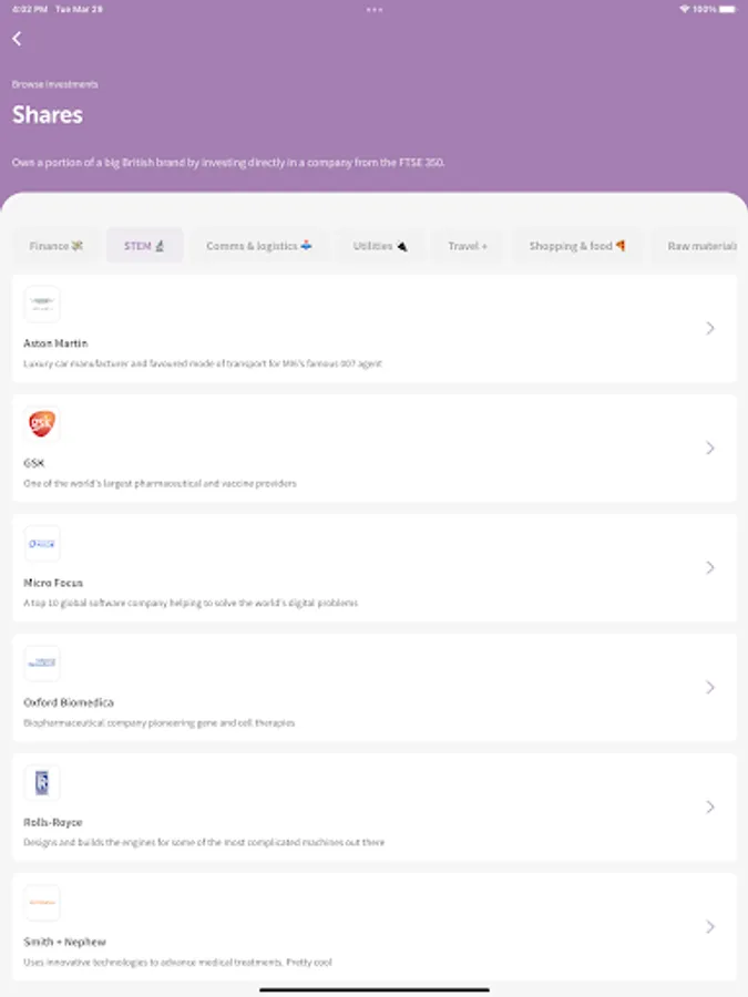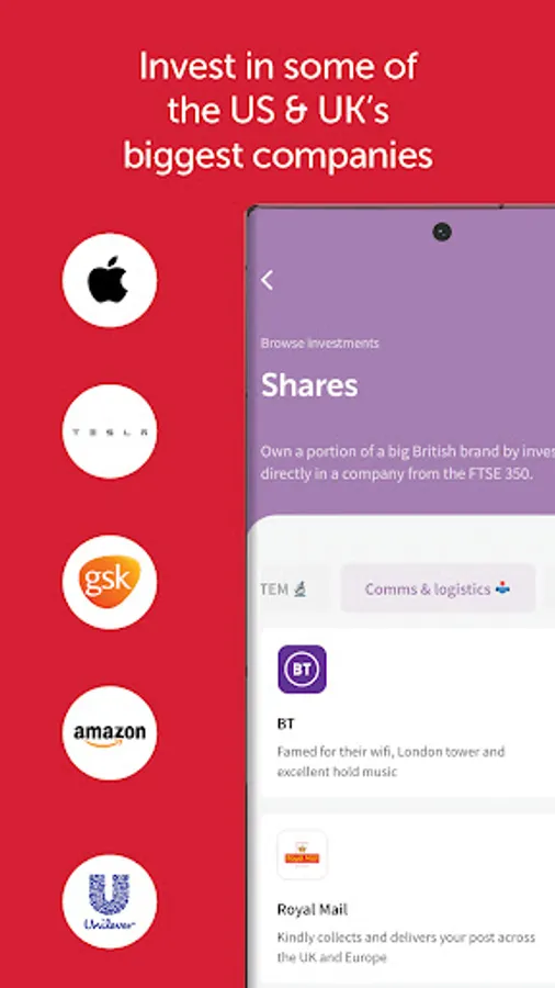 > Shares - own a portion of a big-name brand by investing directly in a company from the UK or US!