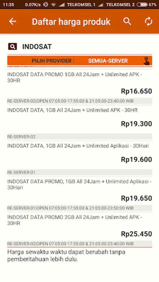 Untuk memberikan pelayanan terbaik, RE-PULSA restart SERVER 5Menit. antara jam 00:00-01:00 WIB, Pada saat pemeliharaan berlangsung Apps RE-PULSA tidak dapat di akses.