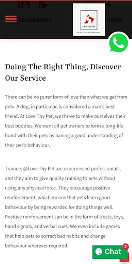 We provides many types of training services like basic dog training, dog obedience training and grooming.
