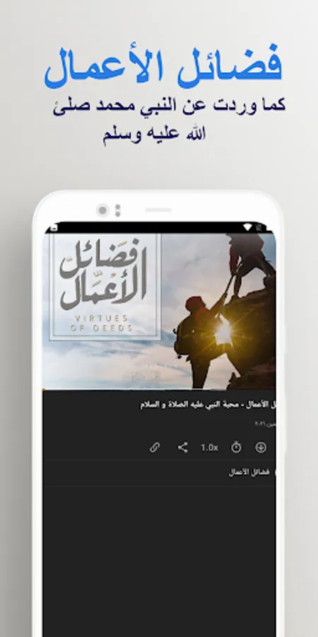It is an audio application that contains the virtues deeds as reported from the Prophet Muhammad, may God bless him and grant him peace.