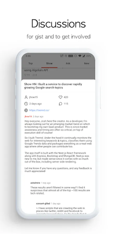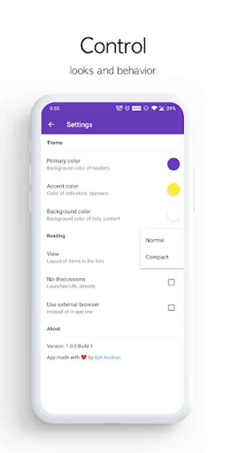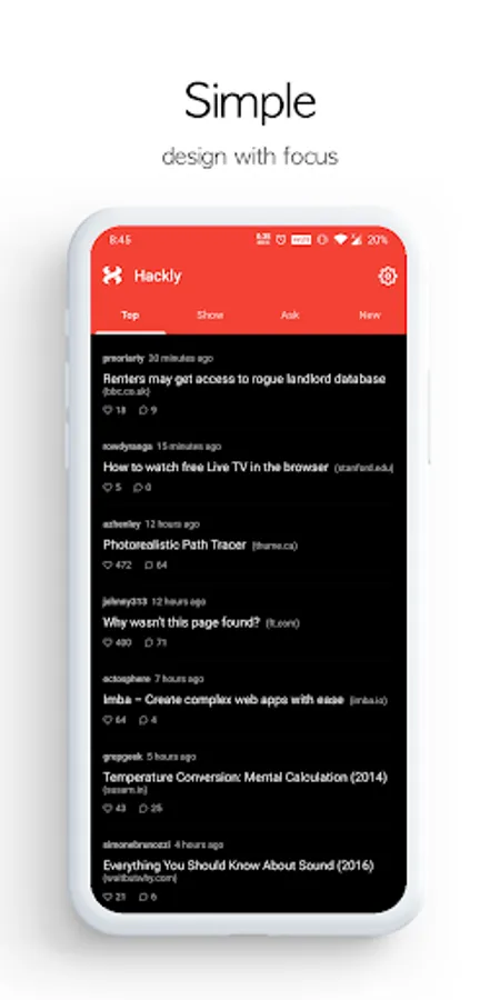 Hackly is a highly customizable Hacker News reader app. As a starting point, you can choose the colors, layout of the story, etc.