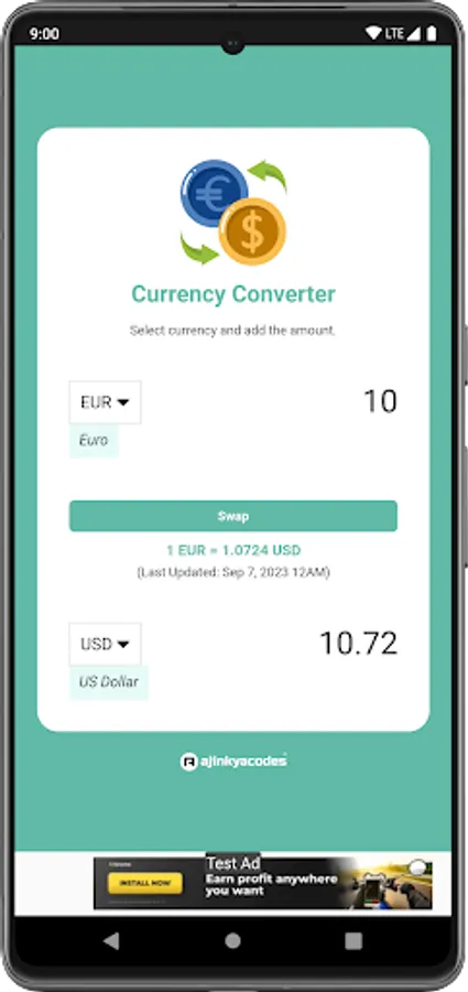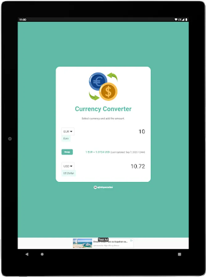 Currency Converter app helps you to select any currency, enter the amount value, and convert its current value to another currency. In this app, you will get updated currency values on a daily basis. You can select any two currencies and convert them. You can also swap the two currencies to get the conversion.