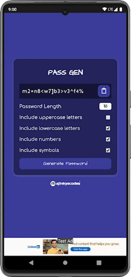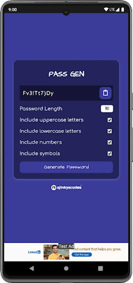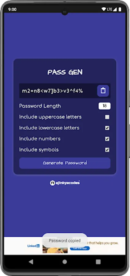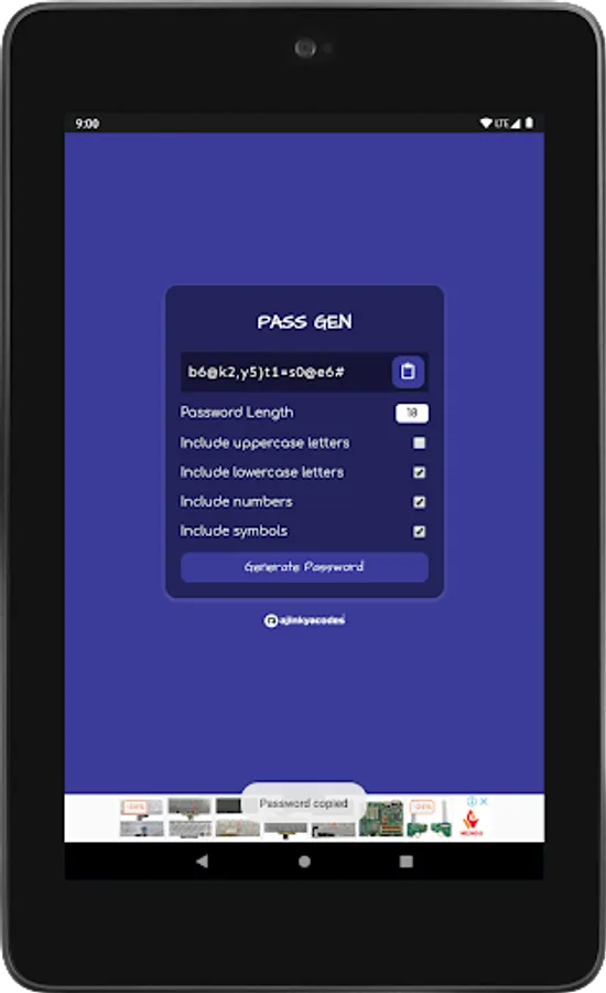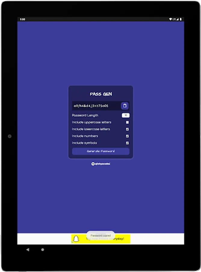 Passgen app generates a password fulfilling the conditions set like lowercase, uppercase, numbers, symbols, and length of the password. You can generate random passwords with different combinations. Once you generate a password you can copy the password to use it.