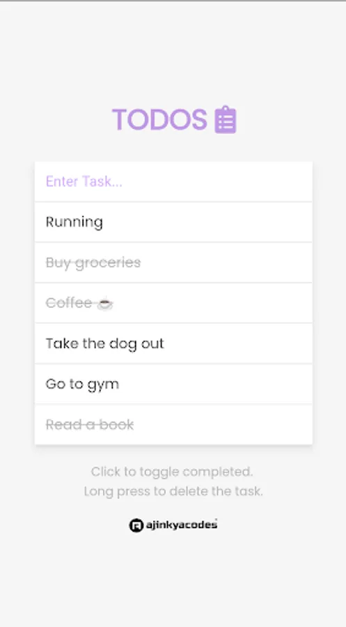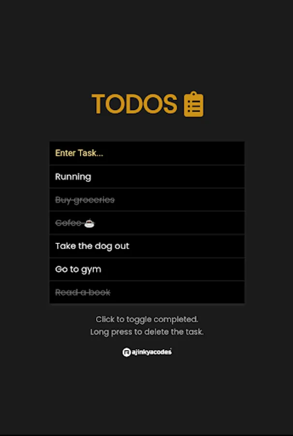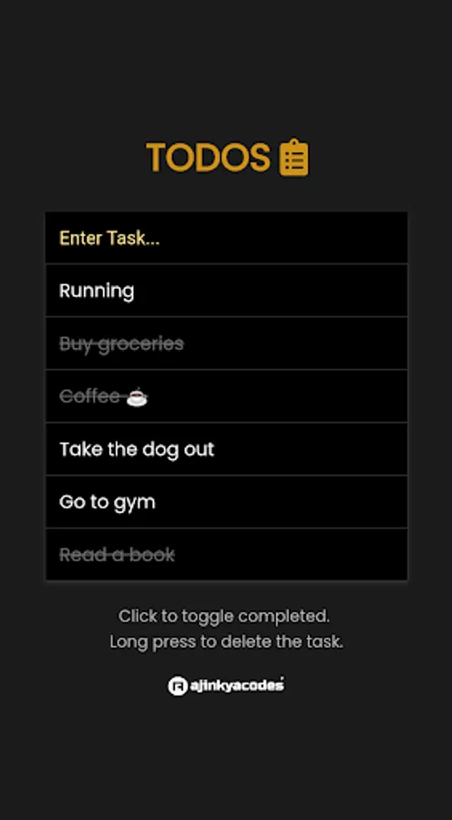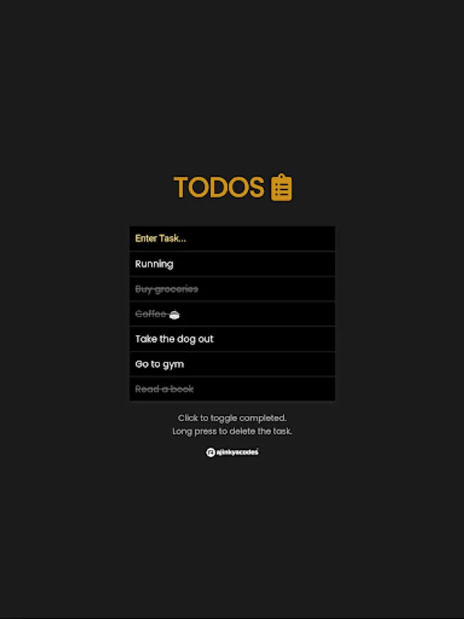 TODOS app tracks your to-do list tasks. You can add your daily tasks, shopping lists, and work tasks and can manage them by making them completed, or uncompleted, or by removing the tasks. You can also use Light Theme and Dark Theme according to your preference by clicking on the list icon.