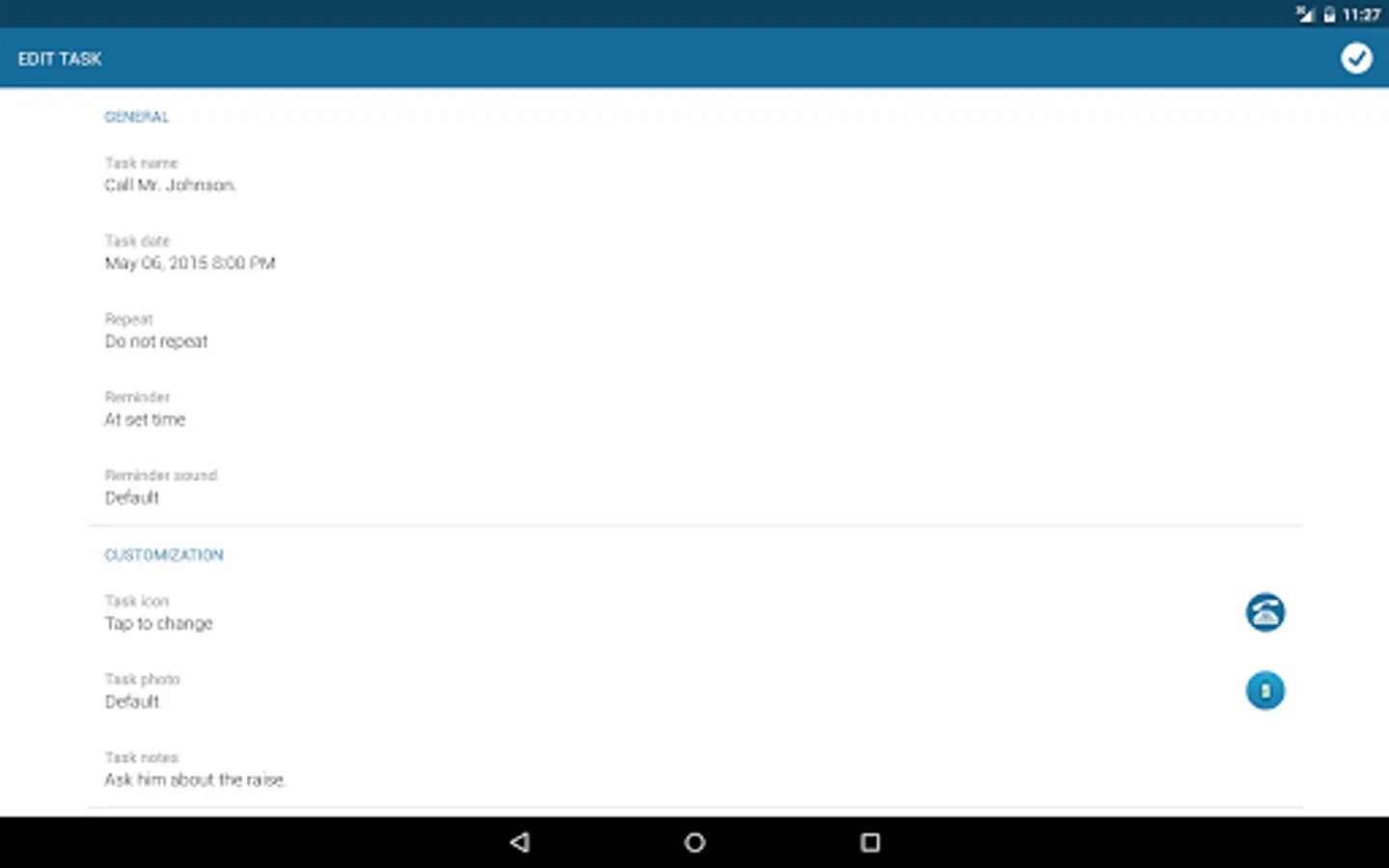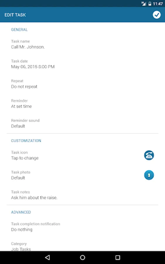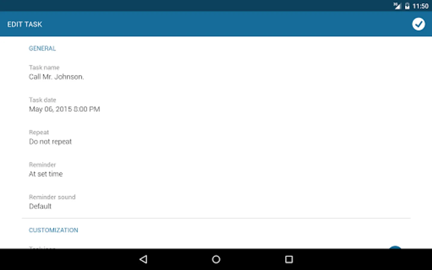 • Customizable check-mark sound and accompanying vibration provide audible and tactile memory cues that a task is done.
