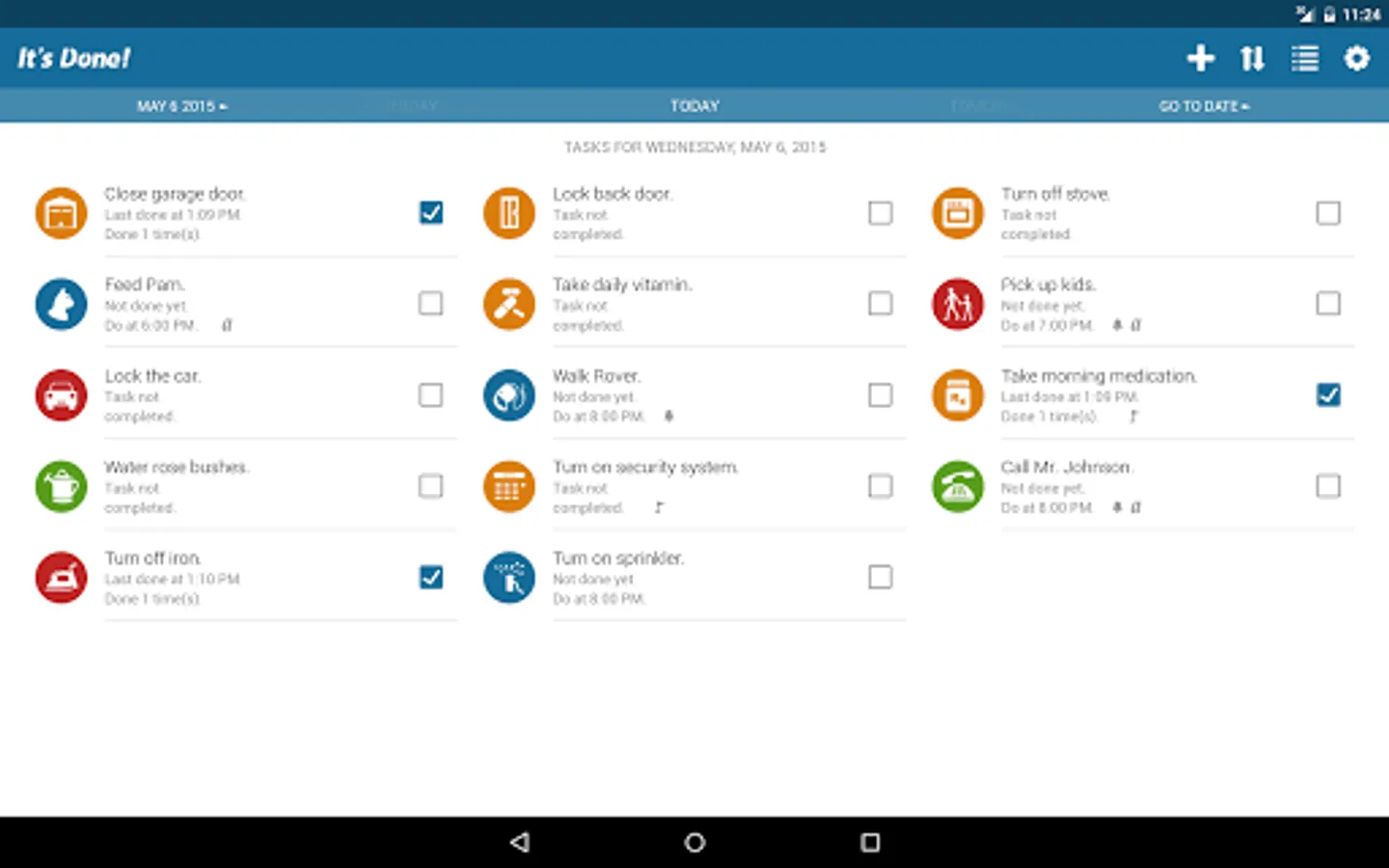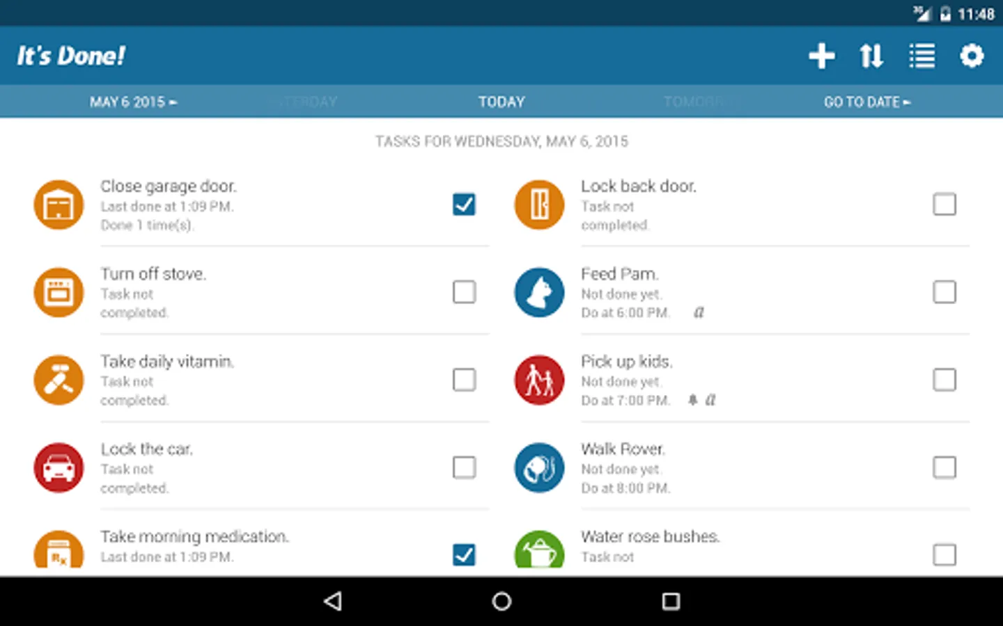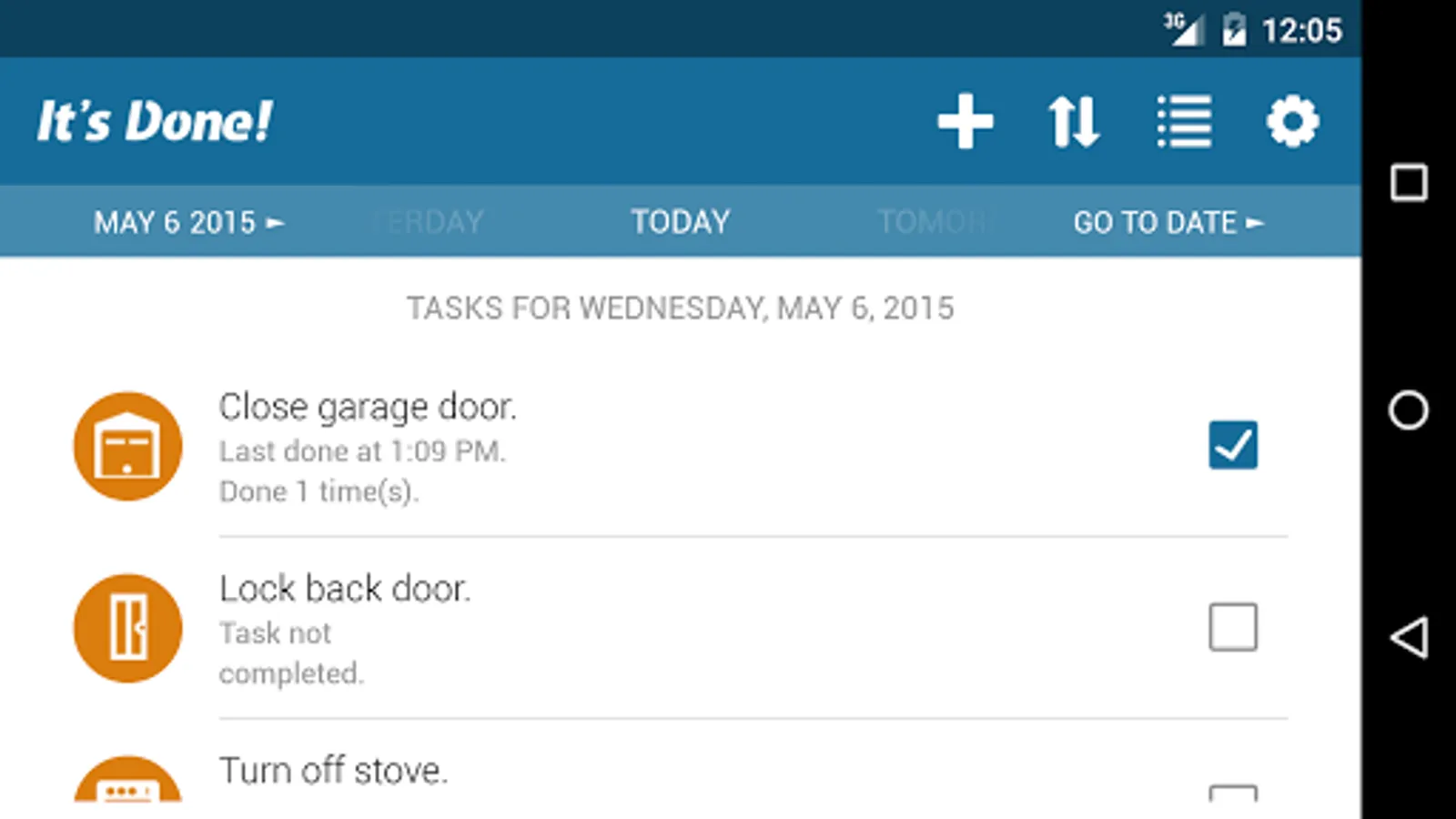 It's Done app can even notify others by text or email that a task is done. Rest easy that mom took her medicine or the kids locked the door.