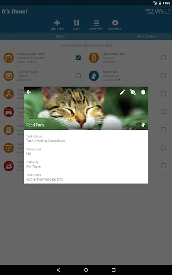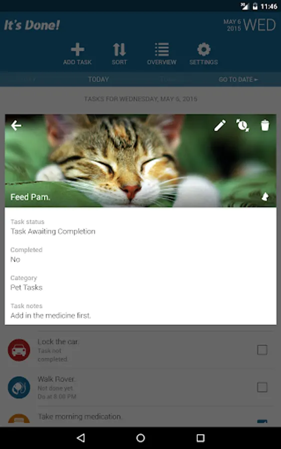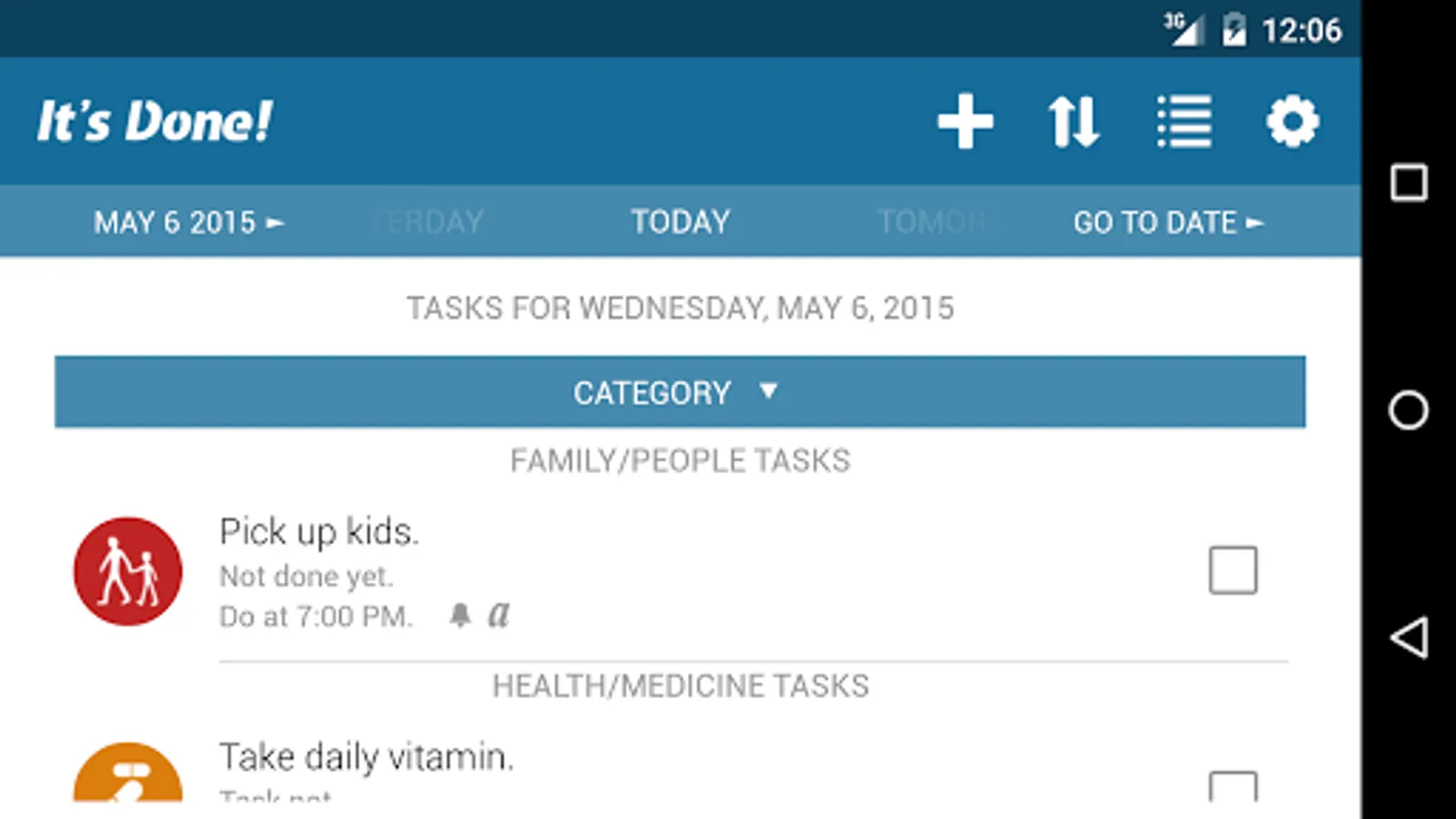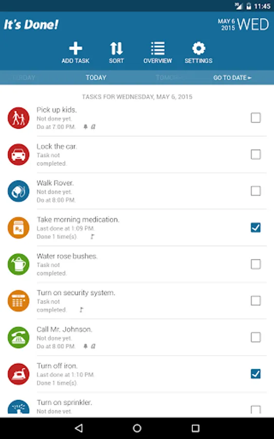 It's Done app can even notify others by text or email that a task is done. Rest easy that mom took her medicine or the kids locked the door.