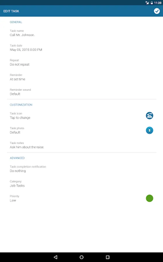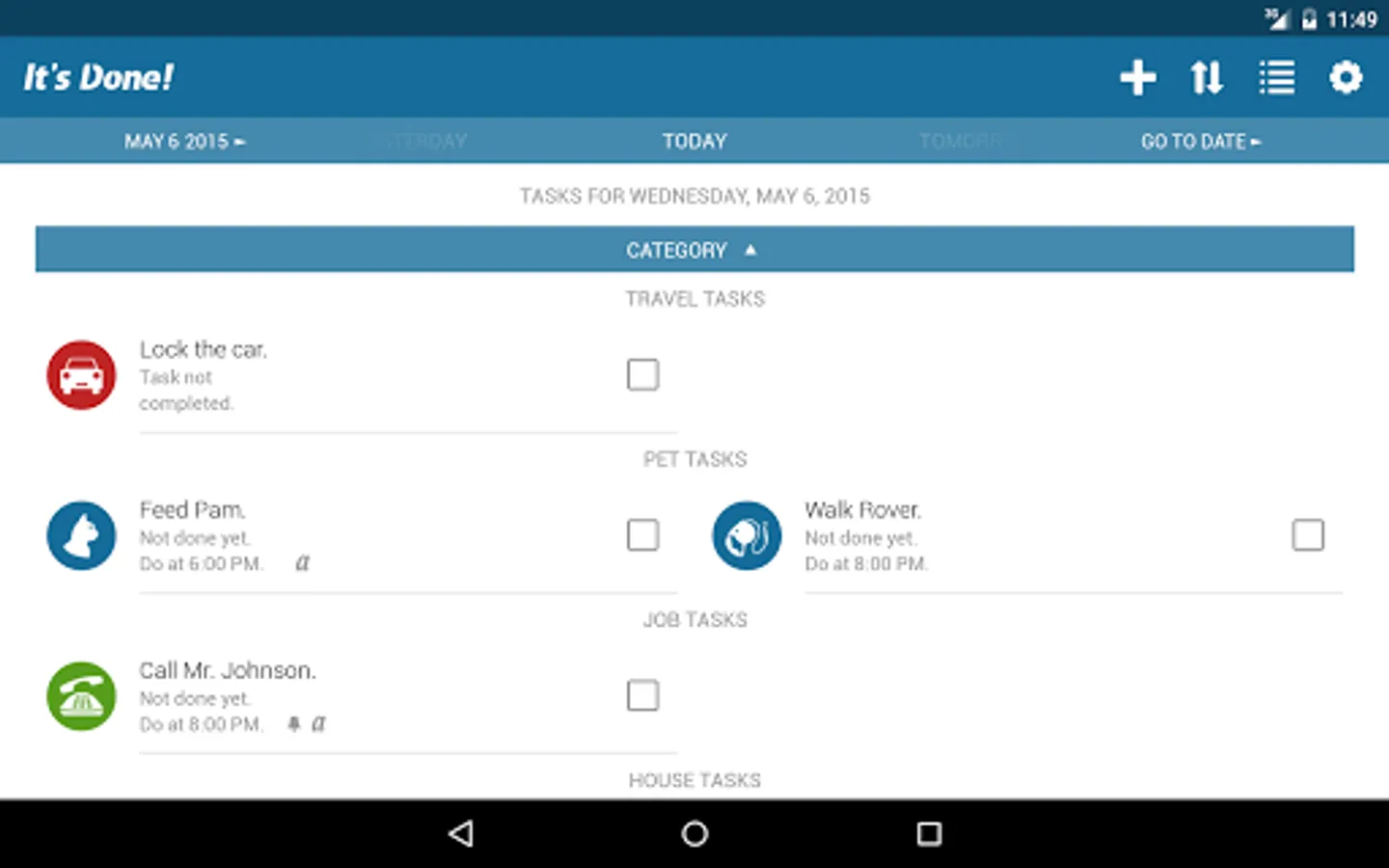 • It's Done app opens quickly to current day’s task list. Easy navigation by day and date allows review of past tasks completed or future tasks scheduled.