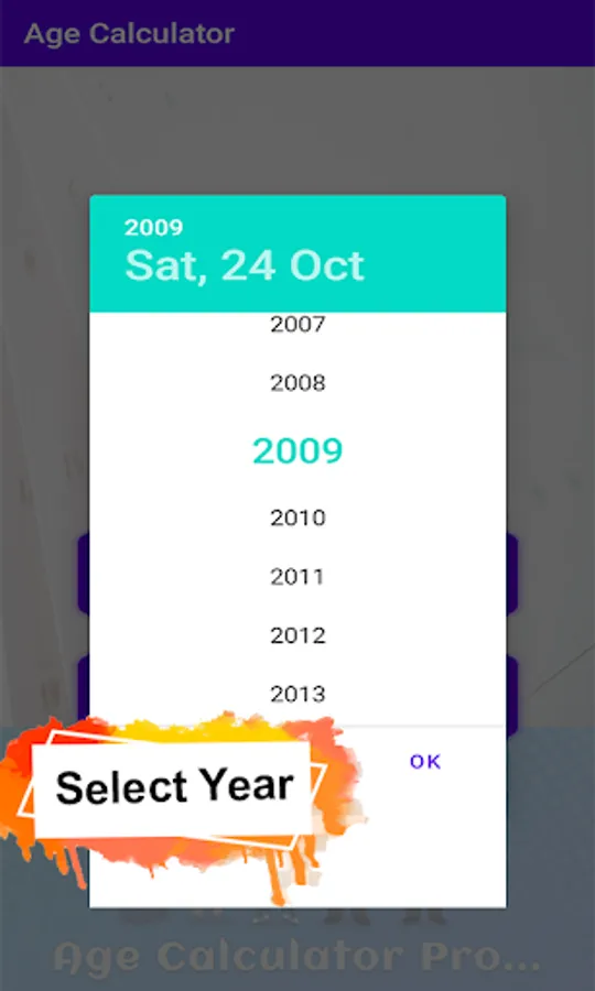 Start AGE Calculator offline app and set your date birth. After this age calculator will calculate your actual age in Days, Months and Years.